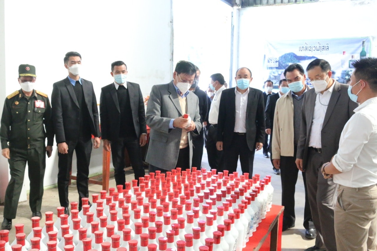ໂດຍທັງຄະນະ ໄດ້ໄປທາງໄປຢ້ຽມຢາມໂຮງງານປຸງແຕ່ງເຫຼົ້າຂຽວ ຢູ່ບ້ານຂຸນສຸກຫຼວງ ເມືອງຜົ້ງສາລີ, ຊຶ່ງເປັນສິນຄ້າທ່າແຮງປະເພດໜຶ່ງທີ່ມີຕົ້ນກຳເນີດ ແລະ ມີຊື່ສຽງທັງເປັນມໍລະດົກຕົກທອດມາຫຼາຍເຊັ່ນຄົນ, ໃນເມື່ອກ່ອນປະຊາຊົນໄດ້ປູກເຂົ້າ ແລະ ສາລີ ມາຜະລິດເປັນເຫຼົ້າ, ດ້ວຍການເຮັດແປ້ງເຫຼົ້າຈາກວັດຖຸດິບທຳມະຊາດ ແລະ ຜະລິດເຫຼົ້າຕາມຄວາມເຂົ້າໃຈເພື່ອຮັບໃຊ້ພາຍໃນຄອບຄົວ ແລະ ເປັນຂອງຝາກຂອງຕ້ອນ. ຢ່າງໃດກໍດີ, ກາງປີ 2016 ກໍມີການກໍ່ສ້າງໂຮງງານດ້ວຍເງິນລົງທຶນທັງໝົດ 900 ລ້ານກີບ ແລະ ສໍາເລັດການກໍ່ສ້າງໃນທ້າຍປີ 2018, ໂຮງງານເລີ່ມຜະລິດເຫຼົ້າຂຽວໃນຕົ້ນເດືອນ 1 ປີ 2020 ແລະ ໄດ້ຮັບການອະນຸຍາດນໍາໃຊ້ກາໝາຍ ໜຶ່ງເມືອງໜຶ່ງຜະລິດຕະພັນແຫ່ງຊາດ ໃນກາງປີດຽວກັນ.