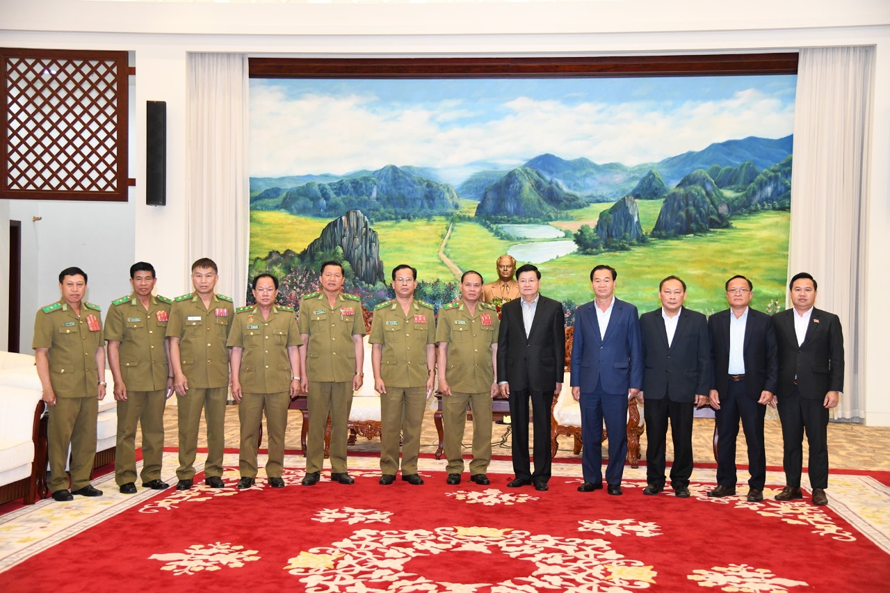 ໂດຍສະຫາຍເລຂາທິການໃຫຍ່ ຄະນະບໍລິຫານງານສູນກາງພັກປະຊາຊົນ ປະຕິວັດລາວ, ປະທານປະເທດແຫ່ງ ສປປ ລາວ, ກໍໄດ້ສະແດງຄວາມຊົມເຊີຍຕໍ່ການນໍາຂັ້ນສູງກະຊວງ ປກສ ກໍຄື ນາຍ ແລະ ພົນຕຳຫຼວດ ໃນທົ່ວກຳລັງປ້ອງກັນຄວາມສະຫງົບ, ທີ່ເວລາໃດກໍ່ເຮັດຫຼ້ອນໜ້າທີ່ ທີ່ໄດ້ຮັບມອບໝາຍ ສົມເປັນກຳລັງປະກອບອາວຸດປະຕິວັດອັນແຫຼມຄົມຂອງພັກ. ໃນວາລະສຳຄັນນີ້, ສະຫາຍ ທອງລຸນ ສີສຸລິດ ກໍໄດ້ໂອ້ລົມໃຫ້ທິດຊີ້ນໍາຕໍ່ຄະນະພັກ-ຄະນະນໍາຂັ້ນສູງກະຊວງ ປກສ ເພື່ອນຳໄປຈັດຕັ້ງປະຕິບັດເຮັດໃຫ້ກຳລັງປ້ອງກັນຄວາມສະຫງົບເປັນກຳລັງປະກອບອາວຸດທີ່ເຂັ້ມແຂງຂອງພັກ, ເປັນກໍາລັງທີ່ມີຄວາມທັນສະໄໝຮອບດ້ານເທື່ອລະກ້າວໂດຍການປັບປຸງແບບແຜນວິທີຄົ້ນຄິດ, ວິທີເຮັດວຽກຂອງຖັນແຖວພະນັກງານໃນຂົງເຂດ ປກສ ໃຫ້ໄປທ່ວງທັນກັບສະພາບການເລັ່ງທວງໃນປັດຈຸບັນ, ວິໄຈບັນຫາໃຫ້ຖືກຕ້ອງ ແລະ ວາງແຜນຢ່າງຮັດກຸມ, ຈັດລຽງບຸລິມະສິດຂອງສະພາບທີ່ເກີດຂຶ້ນ ແລະມີຢູ່ໃນປັດຈຸບັນຂອງປະເທດເຮົາເພື່ອວາງແຜນຈັດຕັ້ງປະຕິບັດ ແລະສຳເລັດຜົນເປັນຮູບປະທຳ, ສືບຕໍ່ກໍ່ສ້າງຮາກຖານຢູ່ທ້ອງຖິ່ນໃຫ້ມີຕາໜ່າງປ້ອງກັນຄວາມສະຫງົບທີ່ໜັກແໜ້ນເຂັ້ມແຂງ ແລະດຶງເອົາປະຊາຊົນເຂົ້າຮ່ວມດ້ວຍຄວາມຕື່ນຕົວ ແລະຈິງໃຈ, ປົກປ້ອງຊັບສິນ, ຜົນປະໂຫຍດລວມຂອງລັດ ແລະຂອງປະຊາຊົນດ້ວຍຄວາມຮັບຜິດຊອບສູງ ແລະເປັນທໍາແທ້. ເອົາໃຈໃສ່ຈັດຕັ້ງປະຕິບັດສອງວາລະແຫ່ງຊາດ, ໂດຍສະເພາະແມ່ນວາລະແຫ່ງຊາດວ່າດ້ວຍການແກ້ໄຂບັນຫາຢາເສບຕິດໃຫ້ມີຜົນສໍາເລັດຕາມກໍານົດເວລາທີ່ໄດ້ກຳນົດໄວ້ ແລະພ້ອມກັນເອົາໃຈໃສ່ສ້າງພະລາກັບທີ່ເພື່ອແກ້ໄຂຊີວິດການເປັນຢູ່ຂອງນາຍ ແລະພົນຕໍາຫຼວດຕາມທິດເພິ່ງຕົນເອງ, ສ້າງຄວາມເຂັ້ມແຂງດ້ວຍຕົນເອງ.