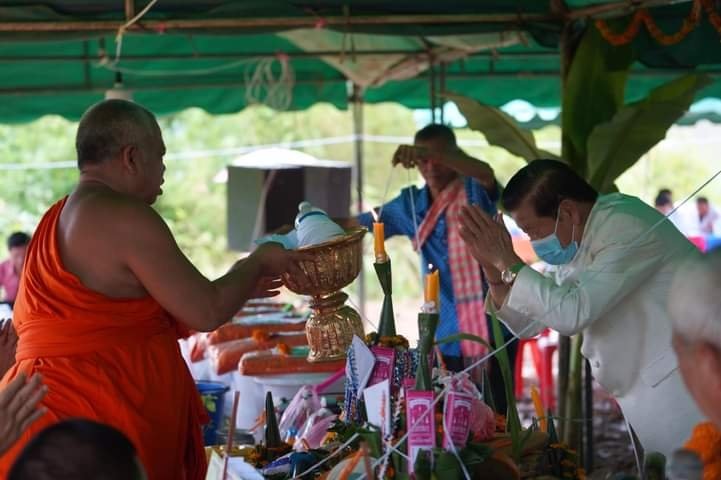 ໂອກາດດັ່ງກ່າວນີ້ ທ່ານ ບຸນຈັນ ປານຟອງເພັດ ເຈົ້າເມືອງໆໂພນທອງ ກໍ່ໄດ້ສະແດງຄວາມຮູ້ບຸນຄຸນ ແລະສະແດງຄວາມຂອບໃຈຕໍ່ເຈົ້າສັດທາ ແລະຜູ້ມີຈິດໃຈເຫຼື້ອມໃສສັດທາ ທີ່ພ້ອມກັນມາສະໜັບສະໜູນ ໃນການສ້າງວັດໃຫ້ເມືອງໂພນທອງ ໃນຄັ້ງນີ້.ຫຼັງຈາກນັ້ນ ກໍໄດ້ເຂົ້າສູ່ພິທີທາງພຸດທະສາສະໜາໂດຍໄດ້ໄຫວ້ພຣະ-ຮັບສິນ, ສູດມະຫາພຸດທະມົນປະຣິຕະມຸງຄຸນ, ຟັງເທດສະຫຼອງ 1 ກັນ, ຄາຣະວະ-ຮັບພອນ ແລະເຂົ້າສູ່ພິທີວາງສີລາຣຶກປຸກເສົາອາຣາມ ແລະພຣະທາດຂື້ນຢ່າງເປັນທາງການ ແລະເພື່ອເປັນສິຣິມຸງຄຸນແກ່ເຈົ້າສັດທາ ແລະພຸດທະສາສະນິກະຊົນທີ່ເຂົ້າຮ່ວມງານໃນຄັ້ງນີ້.