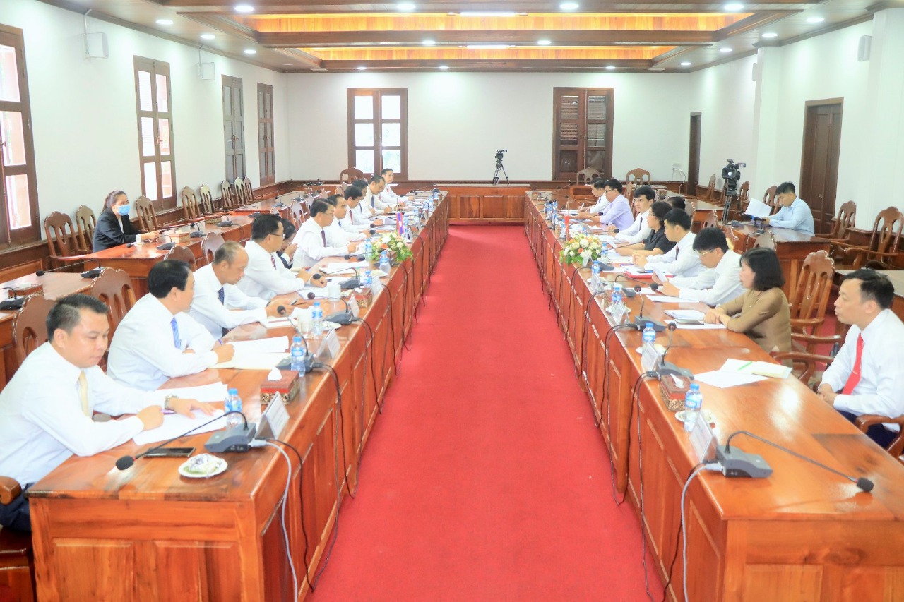 ທີ່ຫ້ອງປະຊຸມຫ້ອງວ່າການແຂວງຫຼວງພະບາງ ສະຫາຍ ບຸນເລື່ອມ ມະນີວົງ ຮອງເຈົ້າແຂວງ ກໍໄດ້ກ່າວຕ້ອນຮັບ ແລະຕີລາຄາສູງຕໍ່ການພົບປະກັນລະຫວ່າງການນໍາ ຂອງ 2 ແຂວງຄັ້ງນີ້ວ່າ: ການຢ້ຽມຢາມ ແລະພົບປະຄັ້ງນີ້ໃນໂອກາດສະເຫລີມສະຫລອງສອງວັນປະຫວັດສາດ ລາວ -ຫວຽດນາມຄື: (ວັນສົນທິສັນຍາມິດຕະພາບ ຄົບຮອບ 45 ປີ ແລະວັນສ້າງຕັ້ງສາຍພົວພັນການທູດ ຄົບຮອບ 60 ປີ) “ ປີສາມັກຄີມິດຕະພາບ ລາວ-ຫວຽດນາມ, ຫວຽດນາມ-ລາວ 2022” . ຢູ່ໃນທ່າມກາງທີ່ແຂວງຫຼວງພະບາງ ພວມຈັດຕັ້ງປະຕິບັດມະຕິກອງປະຊຸມໃຫ່ຍຂອງພັກ, ແຂວງຫຼວງພະບາງ ໄດ້ສຳເລັດການເຜີຍແຜ່ເນື້ອໃນເນື່ອງໃນໂອກາດສະເຫຼີມສະຫຼອງສອງວັນປະຫວັດສາດຢູ່ບັນດາພະແນກການ, ເມືອງໂດຍພື້ນຖານ ແລະເຄື່ອນໄຫວກິດຈະກໍາຕ່າງໆ ເພື່ອສະເຫຼີມສະຫຼອງວັນດັ່ງກ່າວ, ພ້ອມດຽວກັນນີ້ກໍ່ໄດ້ເຮັດໜັງສືເຊື້ອເຊີນຄະນະຜູ້ແທນຈາກ 13 ແຂວງ ແລະ 2 ກົມກອງ ຂອງ ສສ ຫວຽດນາມ, ມາເຂົ້າຮ່ວມງານສະເຫຼີມສະຫຼອງປີມິດຕະພາບລາວ-ຫວຽດນາມ ທີ່ຈະຈັດຂຶ້ນຢູ່ແຂວງຫຼວງພະບາງ ໃນວັນທີ 18/07/2022. ພ້ອມດຽວກັນນີ້ ທ່ານ ບຸນເລື່ອມ ມະນີວົງ ກໍໄດ້ຍົກໃຫ້ເຫັນສະພາບໂດຍຫຍໍ້ຂອງແຂວງຫຼວງພະບາງເປັນໜຶ່ງໃນບັນດາແຂວງພາກເໜືອລາວ, ມີຊາຍແດນຕິດກັບ 7 ແຂວງພາກເໜືອຂອງລາວ ແລະ 02 ແຂວງຂອງ ສສ ຫວຽດນາມ, ມີເນື້ອທີ່ 16.875 ກິໂລຕາແມັດ, ລະບົບການປົກຄອງມີ 11 ເມືອງ ແລະ 1 ນະຄອນ, ພົນລະເມືອງທັງໝົດ 5 ແສນກວ່າຄົນ,ລວມຍອດຜະລິດຕະພັນພາຍໃນ (GDP) ຂອງປີຜ່ານມາບັນລຸໄດ້ 8176,5 ຕື້ກີບ, ສະເລ່ຍລາຍຮັບໃສ່ຫົວຄົນ 17,36 ລ້ານກີບ/ຄົນ/ປີ.ໃນນັ້ນ: ລວມຍອດຜະລິດຕະພັນກະສິກຳ-ປ່າໄມ້ ກວມ 40,1% ;ດ້ານອຸດສາຫະກຳ-ຫັດຖະກໍາ ກວມ 24,51% ;ດ້ານການບໍລິການ ກວມ 35,38%. ແຂວງຫຼວງພະບາງ ຖືເອົາວຽກງານການທ່ອງທ່ຽວເປັນວຽກງານບູລິມະສິດ, ເປັນເສົາຄໍ້າໃຫ້ແກ່ການພັດທະນາເສດຖະກິດ-ສັງຄົມຂອງແຂວງ, ເປັນຂະແໜງການທີ່ຊຸກຍູ້ໃຫ້ແກ່ຂະແໜງການປີ່ນອ້ອມໄດ້ຮັບການເຕີບໃຫ່ຍຂະຫຍາຍຕົວເພີ່ມຂຶ້ນຕະຫຼອດມາ.