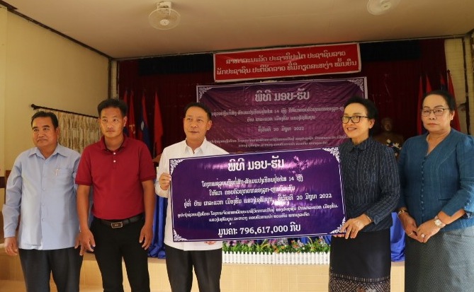 ພິທີມອບ-ຮັບ ໂຄງການຊ່ວຍເຫຼືອກໍ່ສ້າງ-ສ້ອມແປງເຮືອນຢູ່ອາໃສ ຈໍານວນ 14 ຫຼັງ ໃຫ້ແກ່ 14 ຄອບຄົວ ຂອງລູກຫຼານວິລະຊົນ ທີ່ທຸກຍາກຢູ່ບ້ານຜາລະແວກ ເມືອງຮົ່ມ ແຂວງໄຊສົມບູນ ໄດ້ຈັດຂຶ້ນໃນວັນທີ 20 ມິຖຸນາ 2022 ຢູ່ສະໂມສອນເມືອງຮົ່ມໂດຍເຂົ້າຮ່ວມພິທີໃນຄັ້ງນີ້ມີທ່ານ ພອຍຄໍາ ຮຸ່ງບຸນຍວງ, ເຈົ້າແຂວງໄຊສົມບູນ, ທ່ານ ປ້ານາລີ ສີສຸລິດ, ປະທານທີ່ປຶກສາກິດຕິມະສັກໂຄງການຈິດອາສາພັດທະນາຊີວິດການເປັນຢູ່ຂອງປະຊາຊົນບັນດາເຜົ່າ ແລະທ່ານ ຄໍາເພັດ ດວງມາລາ ເຈົ້າເມືອງເມືອງຮົ່ມ, ມີຄອບຄົວການນໍາຂັ້ນສູງຕະຫຼອດຮອດບັນດານັກທຸລະກິດພ້ອມດ້ວຍຄະນະຮັບຜິດຊອບໂຄງການຂັ້ນແຂວງ, ເມືອງ, ອໍານາດການປົກຄອງບ້ານ ແລະ ພໍ່ແມ່ປະຊາຊົນ 14 ຄອບຄົວ ທີ່ໄດ້ຮັບການຊ່ວຍເຫຼືອເຂົ້າຮ່ວມ.