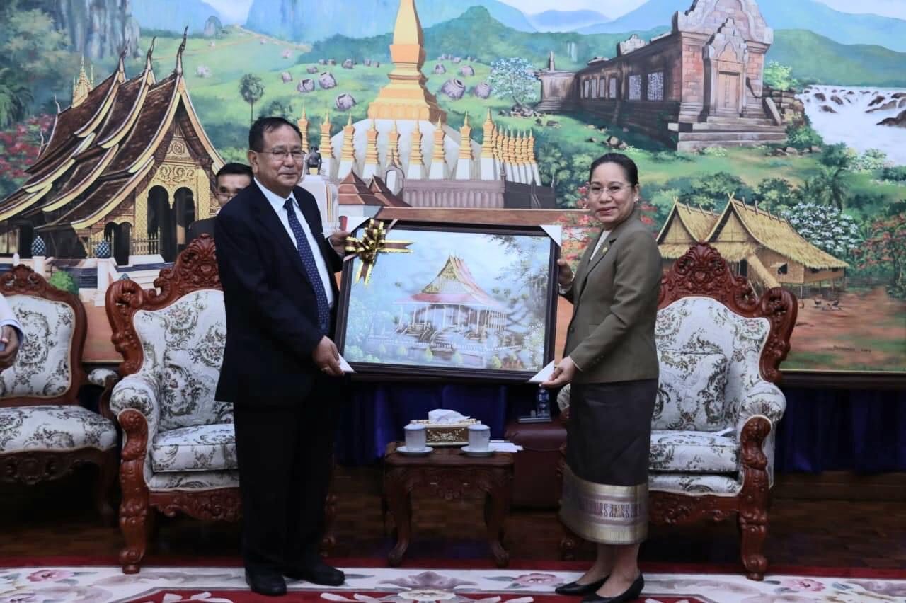ໃນວັນທີ 23 ມິຖຸນາ 2022 ນີ້, ທ່ານ ນາງ ສວນສະຫວັນ ວິຍະເກດ ລັດຖະມົນຕີກະຊວງຖະແຫລງຂ່າວ, ວັດທະນະທຳ ແລະທ່ອງທ່ຽວ (ຖວທ) ໄດ້ໃຫ້ກຽດຕ້ອນຮັບທ່ານ ຣາຈ໌ກູມາ ຣານຈັ່ນ ຊິ່ງ ( Rajkumar Ranjan Singh) ຮອງລັດຖະມົນຕີກະຊວງການຕ່າງປະເທດ ແຫ່ງສາທາລະນະລັດ ອິນເດຍ ພ້ອມດ້ວຍຄະນະ ໃນໂອກາດເດີນທາງມາຢ້ຽມຍາມ ແລະເຮັດວຽກ ຢູ່ ສປປ ລາວ.