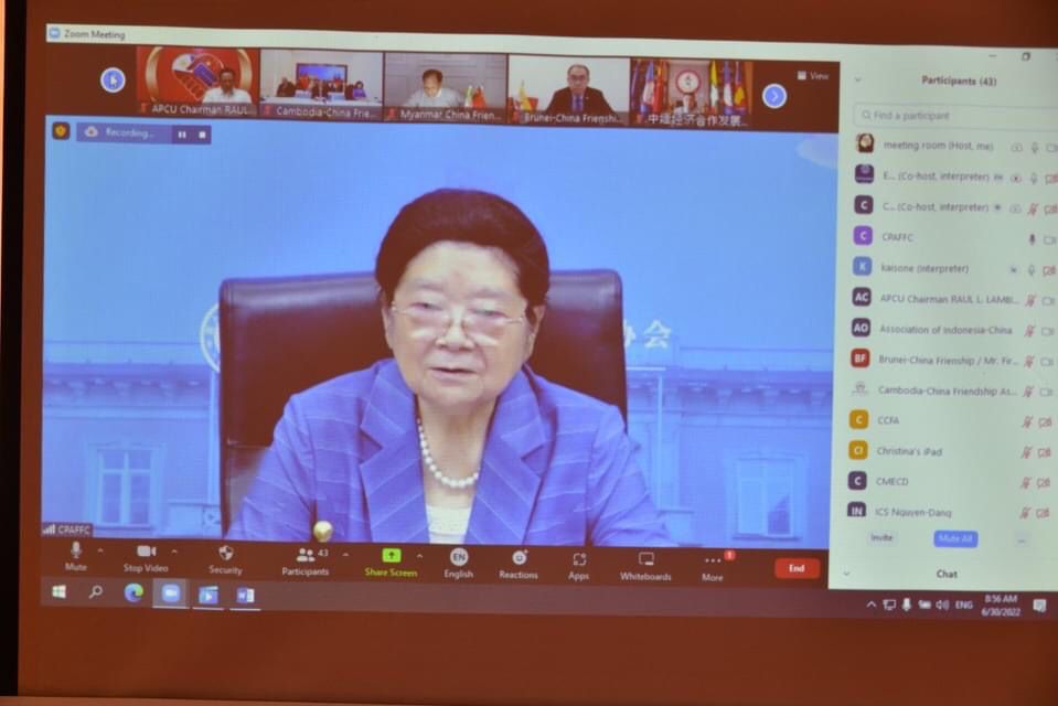 ກອງປະຊຸມ ສະມາຄົມມິດຕະພາບປະຊາຊົນ ກັບປະຊາຊົນ ອາຊຽນ-ຈີນ ຄັ້ງທີ 13 ຜ່ານລະບົບວີດີໂອທາງໄກ ພາຍໃຕ້ຫົວຂໍ້ “ການຮ່ວມມືເພື່ອສ້າງຄວາມເຂັ້ມແຂງຮ່ວມກັນ ແລະ ດໍາລົງຊີວິດຢ່າງປອດໄພຕາມວິຖີການດໍາລົງຊີວິດແບບໃໝ່ ” ໄດ້ຈັດຂຶ້ນໃນວັນທີ 30 ມີຖຸນາ 2022 ໂດຍການເປັນເຈົ້າພາບຂອງສະມາຄົມມິດຕະພາບ ລາວ-ຈີນ ຂັ້ນສູນກາງຊຶ່ງມີຜູ້ແທນຈາກສະມາຄົມມິດຕະພາບ ຈີນ-ອາຊຽນ, ສະມາຄົມມິດຕະພາບປະຊາຊົນຈີນກັບຕ່າງປະເທດ ແລະບັນດາສະມາຄົມມິດຕະພາບ ອາຊຽນ-ຈີນ ເຂົ້າຮ່ວມ.