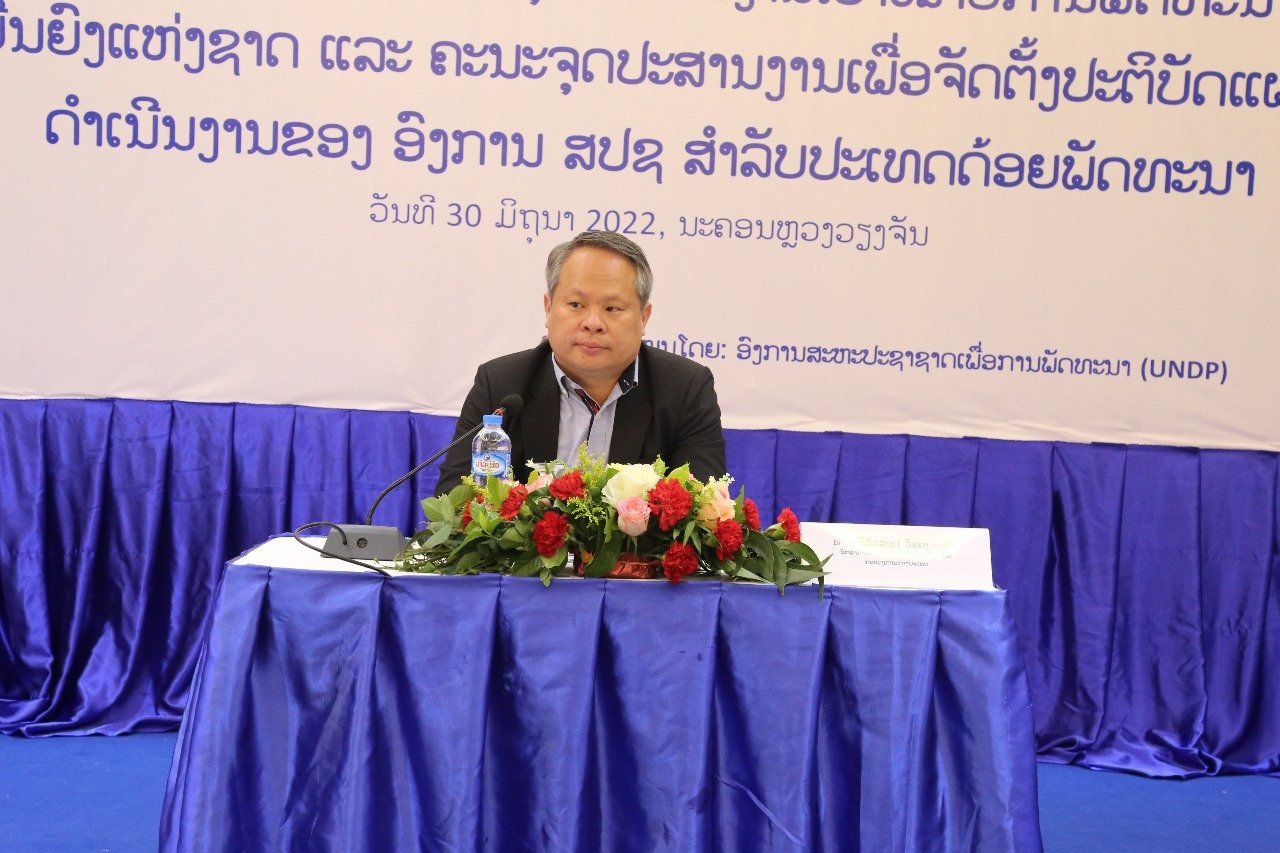 ທ່ານ ວິລັດສອນ ວິສອນນະວົງ ຮັກສາການຫົວຫນ້າກົມອົງການຈັດຕັ້ງສາກົນ, ກະຊວງການຕ່າງປະເທດປະທານກອງປະຊຸມໄດ້ໃຫ້ຮູ້ເຖິງຄວາມໝາຍຄວາມສໍາຄັນ ຂອງການຈັດຕັ້ງປະຕິບັດ ເປົ້າໝາຍການພັດທະນາແບບຍືນຍົງ ໂດຍສະເພາະ ການເຊື່ອມສານຕົວຊີ້ບອກ ປພຍ ເຂົ້າໃນແຜນພັດທະນາເສດຖະກິດ-ສັງຄົມແຫ່ງຊາດ 5 ປີ ຄັ້ງທີ IX ແລະການສ້າງແຜນຍຸດທະສາດການຂ້າມຜ່ານອອກຈາກສະຖານະພາບປະເທດດ້ອຍພັດທະນາຢ່າງໂລ່ງລຽນຂອງ ສປປ ລາວ ເຊິ່ງບໍ່ພຽງແຕ່ຈະສະແດງໃຫ້ເຫັນເຖິງຄວາມໝາຍໝັ້ນອັນແຮງກ້າຂອງລັດຖະບານ ໃນການຈັດຕັ້ງວາລະ 2030 ຄຽງຄູ່ກັບເປົ້າໝາຍການພັດທະນາທີ່ເປັນບູລິມະສິດຂອງຊາດ, ແຕ່ຍັງເປັນໂອກາດອັນດີໃນການຕິດຕາມ-ປະເມີນ, ຄຽງຄູ່ກັບການທົບທວນຄືນ ແລະລາຍງານຄວາມຄືບໜ້າ, ຜົນສໍາເລັດ, ສິ່ງທ້າທາຍຕ່າງໆ ໃນການຈັດຕັ້ງປະຕິບັດ ວາລະສາກົນໃນໄລຍະທີ່ຜ່ານມາ ແລະວາງແຜນໄລຍະຍາວໃນການຫລຸດພົ້ນອອກຈາກສະຖານະພາບປະເທດດ້ອຍພັດທະນາໃຫ້ມີຄວາມຍືນຍົງ ແລະເຮັດແນວໃດເພື່ອຮັບປະກັນວ່າຈະບໍ່ກັບຄືນສະຖານະພາບດ້ອຍພັດທະນາຄືນອີກ.