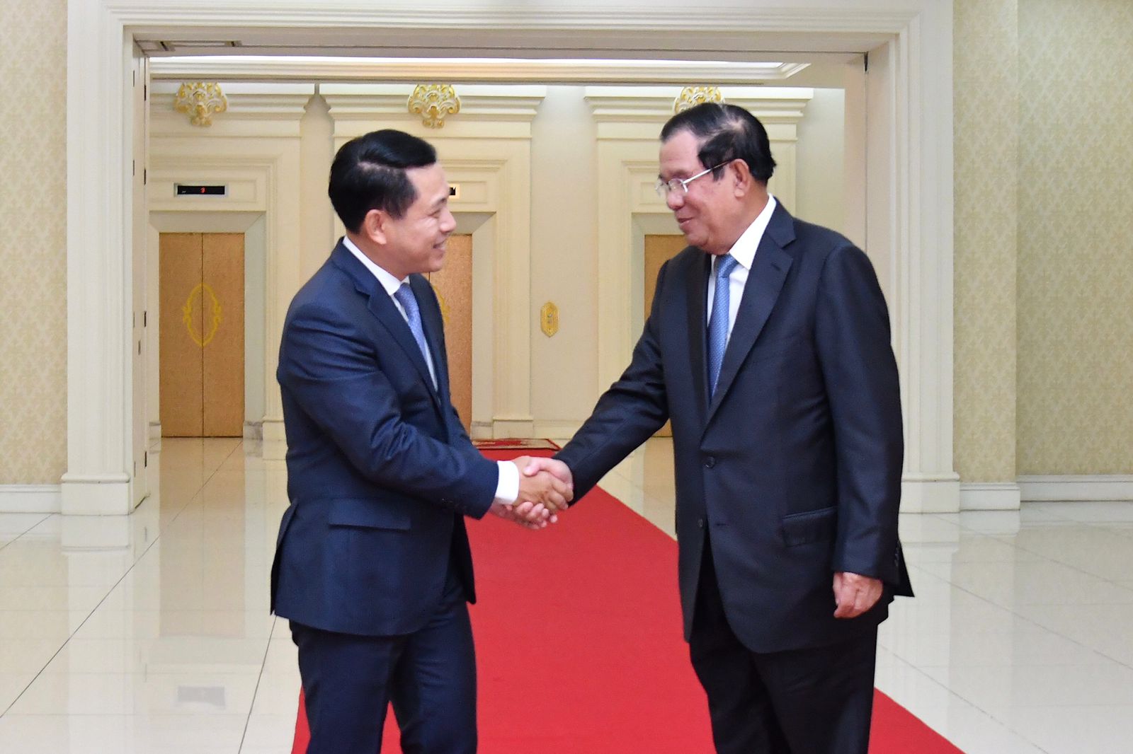 ໃນຕວັນທີ 07 ກໍລະກົດ 2022, ທ່ານຮອງນາຍົກລັດມົນຕີ ສະເຫຼີມໄຊ ກົມມະສິດ ພ້ອມດ້ວຍຄະນະໄດ້ເຂົ້າຢ້ຽມຂໍ່ານັບສົມເດັດອັກຄະມະຫາເສນາບໍດີເຕໂຈ ຮຸນແຊນ, ນາຍົກລັດຖະມົນຕີ ແຫ່ງ ຣາຊະອານາຈັກ ກໍາປູເຈຍ. ໃນໂອກາດນີ້, ທ່ານຮອງນາຍົກລັດຖະມົນຕີ ສະເຫຼີມໄຊ ກົມມະສິດ ໄດ້ສະແດງຄວາມຂອບໃຈມາຍັງ ສົມເດັດ ນາຍົກລັດຖະມົນຕີ ເຕໂຈ ຮຸນແຊນ ທີ່ໄດ້ໃຫ້ກຽດຕ້ອນຮັບການເຂົ້າຢ້ຽມຂໍ່ານັບໃນຄັ້ງນີ້, ພ້ອມທັງໄດ້ສະແດງຄວາມຊົມເຊີຍຕໍ່ຜົນສໍາເລັດໃນການເລືອກຕັ້ງສະມາຊິກສະພາທ້ອງຖິ່ນ (ສະພາຕາແສງ) ຊຸດທີ 5, ຊຶ່ງໄດ້ຈັດຂຶ້ນໃນວັນທີ 7 ມິຖຸນາ 2022 ຜ່ານມາ ແລະ ຊົມເຊີຍພັກປະຊາຊົນກໍາປູເຈຍ ທີ່ໄດ້ຮັບໄຊຊະນະໃນການເລືອກຕັ້ງຄັ້ງນີ້. ພ້ອມນັ້ນ, ທ່ານ ຮອງນາຍົກລັດຖະມົນຕີ ສະເຫຼີມໄຊ ກົມມະສິດ ຍັງໄດ້ຕາງໜ້າໃຫ້ ລັດຖະບານ ແລະປະຊາຊົນລາວສະແດງຄວາມຂອບໃຈ ມາຍັງລັດຖະບານ ແລະປະຊາຊົນກໍາປູເຈຍທີ່ໄດ້ໃຫ້ການຊ່ວຍເຫຼືອແກ່ ສປປ ລາວ ໃນໄລຍະຜ່ານມາ,ໂດຍສະເພາະໃນວຽກງານການຕ້ານ ແລະສະກັດກັ້ນການແຜ່ລະບາດຂອງພະຍາດໂຄວິດ-19. ພ້ອມນີ້, ທ່ານ ຮອງນາຍົກລັດຖະມົນຕີ ສະເຫຼີມໄຊ ກົມມະສິດ ຍັງໄດ້ນໍາເອົາຄວາມຢື້ຢາມຖາມຂ່າວ ແລະຄໍາເຊື້ອເຊີນຂອງພະນະທ່ານພັນຄໍາ ວິພາວັນ,ນາຍົກລັດຖະມົນຕີ ແຫ່ງ ສປປ ລາວ ເຖິງສົມເດັດນາຍົກລັດຖະມົນຕີ ອັກຄະມະຫາ ເສນາບໍດີ ເຕໂຈ ຮຸນແຊນ ພ້ອມດ້ວຍພັນລະຍາເດີນທາງຢ້ຽມຢາມ ສປປ ລາວ ຢ່າງເປັນທາງການໃນໂອກາດທີ່ເໝາະສົມ.