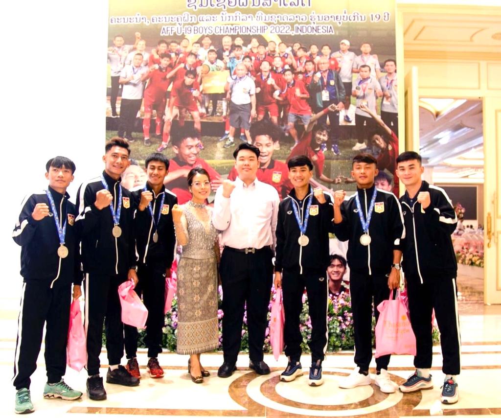 ຊຶ່ງໃນພິທີ່ຕ້ອນຮັບດັ່ງກ່າວກໍ່ມີຫລາຍພາກສ່ວນທີ່ຊ່ວຍສະໜັບສະໜູນນັກກີລາໜຶ່ງໃນນັ້ນ ນ້ອງ ຮຸ່ງເຮືອງ ກອນສິນ ອາຍຸ 13 ປີ ປະຈຸບັນສຶກສາຢູ່ໂຮງຮຽນນານາຊາດ ປັນຍາທິບ (PIS) ເປັນນັກຮຽນ ຊັ້ນມ.3 ກຽມຂຶ້ນ ມ.4 ໄດ້ເຫັນຄວາມສຳຄັນການພັດທະນາບານເຕະລາວນຳເອົາເງິນເກັບທີ່ສະສົມສ່ວນຕົວມອບໃຫ້ທີມນັກກິລາບານເຕະທີມຊາດລາວ U19 ຈຳນວນ 300 ລ້ານກີບ ເພື່ອເປັນຂວັນກຳລັງໃຈທີ່ສາມາດຍາດໄດ້ຫລຽນເງິນໃນການແຂ່ງຂັນບານເຕະ AFF U19 Championship 2022 ທີ່ປະເທດອິນໂດເນເຊຍ.