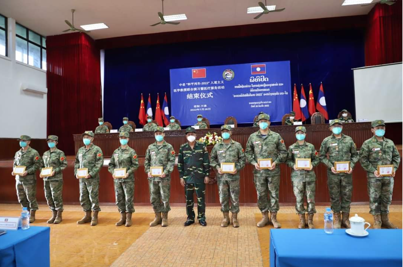 ວັນທີ 28 ກໍລະກົດ 2022 ນີ້, ບັ້ນຫັດແອບ, ຝຶກຊ້ອມຊ່ວຍເຫລືອມະນຸດສະທຳ ແລະກິດຈະກໍາບໍລິການທາງການແພດ (ຂະບວນລົດໄຟສັນຕິພາບ 2022) ລະຫວ່າງກອງທັບປະ ຊາຊົນລາວ ກັບ ກອງທັບປົດປ່ອຍປະຊາຊົນຈີນໄດ້ສໍາເລັດລົງດ້ວຍໝາກຜົນອັນຈົບງາມ, ພາຍຫລັງດໍາເນີນມາແຕ່ວັນທີ 19 ກໍລະກົດ 2022. ໃຫ້ກຽດເຂົ້າຮ່ວມ ພິທີປິດບັ້ນຝຶກແອບດັ່ງກ່າວ, ມີທ່ານ ພົນຕີ ວົງຄໍາ ພົມມະກອນ ຮອງລັດຖະມົນຕີກະຊວງປ້ອງກັນປະເທດ, ທ່ານ ພັນເອກພິເສດ ເສິນ ຊຸນມິງ ຮອງຫົວໜ້າເສນາຮັກກົມຮັບປະກັນພະລາທິການຂອງຄະນະກໍາມະການທະຫານສູນກາງແຫ່ງ ສປ ຈີນ, ຫົວໜ້າຄະນະຂະບວນລົດໄຟສັນຕິພາບ 2022 ກອງທັບປົດປ່ອຍປະຊາຊົນຈີນ, ພ້ອມດ້ວຍພາກສ່ວນກ່ຽວຂ້ອງ ແລະພະນັກງານແພດ-ໝໍເຫລົ່າຮົບເສນາຮັກຂອງກອງທັບລາວ-ຈີນເຂົ້າຮ່ວມ.