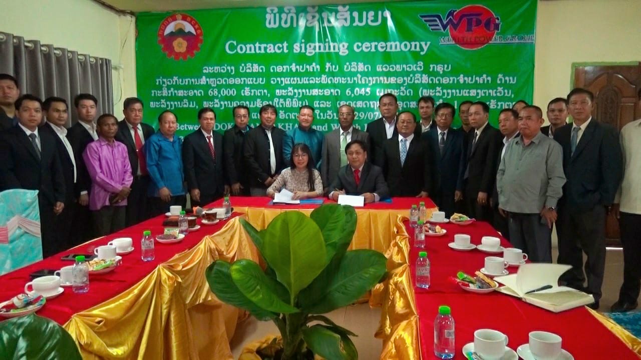 ໂອກາດດັ່ງກ່າວ, ບໍລິສັດສອງຝ່າຍພ້ອມກັນລົງນາມເຊັນສັນຍາໂດຍ ທ່ານ ຫວັດສະດີ ຂຸມເພັດຊະວົງ (ບໍລິສັດ ດອກຈໍາປາຄໍາ)ແລະ ທ່ານ ນາງເຈີ໋ນ ທິ ເຮືອງຮ່າ (ບໍລິສັດ ແວວພາວເວີ ກຣຸບ)