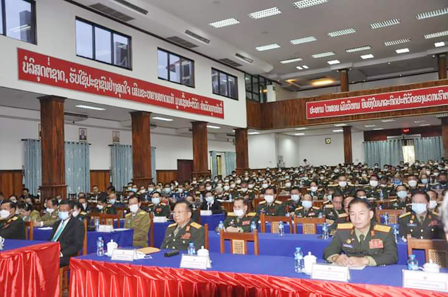 ໃນມື້ດຽວກັນນີ້, ທ່ານ ໄຊສົມພອນ ພົມວິຫານ ກໍໄດ້ໂອລົມຕໍ່ທີ່ປະຊຸມວ່າ: ທ່ານໄດ້ຮຽກຮ້ອງມາຍັງຄະນະພັກ-ຄະນະບັນຊາທຸກຂັ້ນຕະຫຼອດຮອດນາຍ ແລະພົນທະຫານ ທຸກຄົນຈົ່ງໄດ້ເອົາໃຈໃສ່ຮັກສາມູນເຊື້ອອັນດີງາມຂອງກອງທັບໂດຍສຸມໃສ່ປະຕິບັດ ດັ່ງນີ້: 1. ສືບຕໍ່ຝຶກຝົນທາດແທ້ປະຕິວັດ,ຄວາມຈົ່ງຮັກພັກດີຕໍ່ປະເທດຊາດ, ຍອມເສຍສະຫຼະ ເພື່ອຊາດເພື່ອປະຊາຊົນຂອງນາຍ ແລະ ພົນທະຫານໃຫ້ຖືເປັນບັນຫາສຳຄັນໃຈກາງ ແລະ ບໍ່ສາມາດຖືເບົາໄດ້ ທັງເປັນການສືບທອດພາລະກິດປະຕິວັດ ທີ່ນັກຮົບປະຕິວັດຮຸ່ນທຳອິດ ແລະ ຮຸ່ນຕໍ່ໆມາ ໄດ້ມອບໝາຍໃຫ້; 2. ສ້າງຄວາມເປັນເອກະພາບສູງ ກັບແນວທາງນະໂຍບາຍຂອງພັກ, ກົດໝາຍຂອງລັດຢ່າງໜັກແໜ້ນພາຍໃນຖັນແຖວກຳລັງປະກອບອາວຸດ, ໃຫ້ກຳລັງປະກອບອາວຸດ ເປັນກໍາລັງແຖວໜ້າ ໃນການກໍາແໜ້ນແນວທາງນະໂຍບາຍຂອງພັກ, ກົດໝາຍຂອງລັດຈັດຕັ້ງຜັນຂະຫຍາຍອອກມາເປັນແຜນການອັນລະອຽດຂອງກຳລັງປະກອບອາວຸດ, ທັງເປັນແບບຢ່າງທີ່ດີໃນການເຄົາລົບ ແລະ ປະຕິບັດລັດຖະທຳມະນູນກໍຄືກົດໝາຍຕໍ່ປະຊາຊົນ, 3. ກອງທັບ, ນາຍ ແລະ ພົນທະຫານ ຕ້ອງສືບຕໍ່ຝຶກຝົນຄວາມມີລະບຽບວິໄນ, ຖືສິ່ງນີ້ທັງເປັນທາດແທ້, ເປັນຊີວິດຈິດໃຈຂອງຕົນ, ທັງເປັນຄຸນລັກສະນະທີ່ຂາດບໍ່ໄດ້ ເພື່ອເປັນອາວຸດ ອັນແຫຼມຄົມ ຕັດສິນໄຊຊະນະ ຫຼື ປະລາໄຊໃນການຕໍ່ສູ້ກັບສັດຕູຂອງຊາດ; ລະບຽບວິໄນ ຕິດພັນກັບຈັນຍາບັນ ຂອງກອງທັບປະຕິວັດ ບໍ່ຄວນອະນຸຍາດໃຫ້ໃຜອອກນອກກອບຂອງລະບຽບ, ກົດໝາຍ, ກົດຄໍາສັ່ງຢ່າງເດັດຂາດ, ລະບຽບວິໄນກອງທັບຕ້ອງເຄັ່ງຄັດໃນການປະຕິບັດ, ຄວາມເດັດຂາດໃນການບັງຄັບບັນຊາ ເພື່ອໃຫ້ລະບຽບເປັນລະບຽບເຫຼັກ, ເມື່ອເວລາຕ້ອງຍອມເສຍສະຫຼະແມ້ແຕ່ຊີວິດເພື່ອຊາດ, ເພື່ອປະຊາຊົນກໍຕ້ອງກຽມພ້ອມຢູ່ທຸກເວລາ ເພື່ອປະຕິບັດໜ້າທີ່, ເປັນຮົ້ວປ້ອງກັນຊາດທີ່ເຂັ້ມແຂງ, ສາມາດປົກປັກຮັກສາອະທິປະໄຕ ແລະຜືນແຜ່ນດິນອັນຄົບຖ້ວນຂອງປະເທດຊາດ; 4. ກອງທັບເຮົາ ຕ້ອງຝຶກຝົນຫຼໍ່ຫຼອມດ້ານສິນລະປະຍຸດ, ຍຸດທະວິທີ ຢ່າງເປັນປະຈຳ (ຮູ້ສະພາບ, ກໍາສະພາບ ໃຫ້ຊັດເຈນ, ມີຫຼັກວິຊາ ແລະ ຕົວຈິງ) ຖ້າກຳສະພາບໄດ້ດີເທົ່າໃດ, ກໍາສັດຕູແໜ້ນເທົ່າໃດ ພວກເຮົາຈຶ່ງສາມາດເອົາຊະນະກັບສັດຕູໄດ້ (ຮູ້ເຂົາ ຮູ້ເຮົາ ຮົບຮ້ອຍຄັ້ງ ກໍຊະນະຮ້ອຍຄັ້ງ...); ນອກຈາກກຳສະພາບ, ກຳສັດຕູໄດ້ ເຮົາຕ້ອງກໍກໍາລັງຂອງພວກເຮົາໃຫ້ໄດ້, ກຳ ແໜ້ນຄົນ, ກຳລັງດ້ານເຕັກນິກ, ພະລາທິການ, ກຳປະຊາຊົນ, ກຳຄວາມສາມາດຕົວຈິງຂອງພວກເຮົາອັນໃດພຽງພໍແລ້ວ, ອັນໃດຄວນພັດທະນາເພີ່ມ ໃຫ້ມີການຄິດໄລ່ຢ່າງຊັດເຈນ; ເອົາໃຈໃສ່ປັບປຸງຊີວິດການເປັນຢູ່ຂອງກຳລັງທີ່ປະຈຳການຢູ່ເຂດຫ່າງໄກສອກຫຼີກ, ໃນເຂດຊາຍແດນ, ສ້າງໃຫ້ກຳລັງມີຄວາມເຊື່ອໝັ້ນຕໍ່ການນຳພາຂອງພັກ-ລັດເຮົາ ແລະ ມີຈິດໃຈຮັກຊາດ, ຮັກອະທິປະໄຕຂອງປະເທດເຮົາ, 5. ໃນສະພາບປັດຈຸບັນ ແລະ ໃນຕໍ່ໜ້າສຸດທີ່ມີຄວາມຈຳເປັນຕ້ອງໄດ້ພັດທະນາກອງທັບໃຫ້ເຂັ້ມແຂງ,ມີແບບ