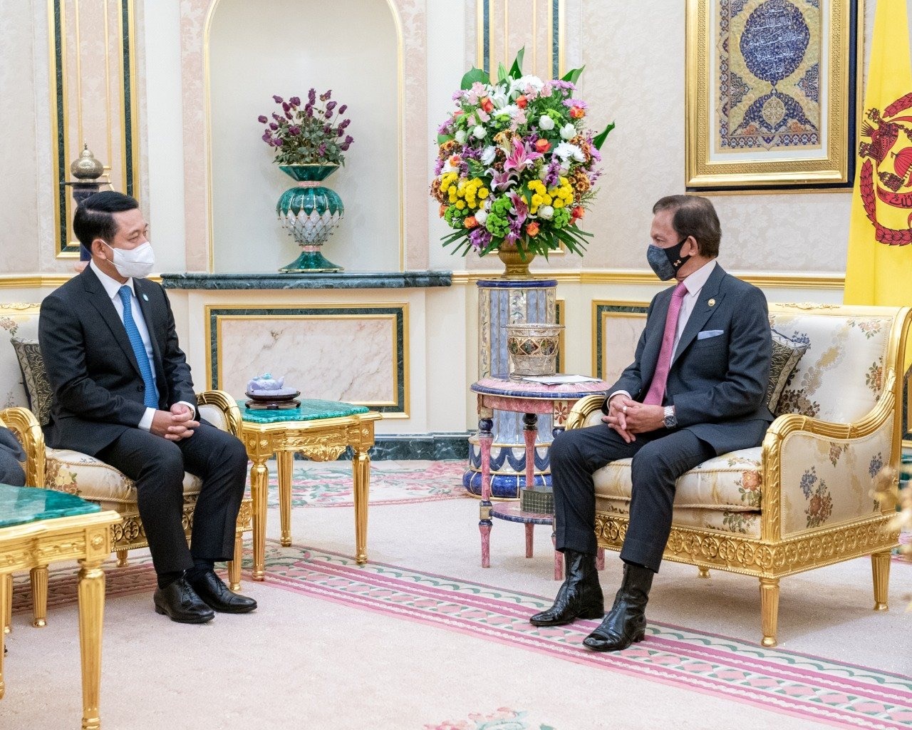 ໃນໂອກາດເຂົ້າຮ່ວມກອງປະຊຸມຄັ້ງນີ້, ທ່ານຮອງນາຍົກລັດຖະມົນຕີ ສະເຫຼີມໄຊ ກົມມະສິດ ພ້ອມດ້ວຍຄະນະຜູ້ແທນລາວ ໄດ້ເຂົ້າຢ້ຽມຂໍ່ານັບສົມເດັດ ຊຸນຕານ ຮາຈິ ຮັດຊານັນ ໂບນເກຍ ແຫ່ງ ບູຣໄນ ດາຣູຊາລາມ ແລະໄດ້ສະແດງຄວາມຂອບໃຈຕໍ່ການຕ້ອນຮັບອັນອົບອຸ່ນ, ພ້ອມທັງໄດ້ແຈ້ງໃຫ້ຊາບກ່ຽວກັບຜົນສຳເລັດຂອງກອງປະຊຸມຄະນະກຳມາທິການຮ່ວມ ວ່າດ້ວຍການຮ່ວມມືສອງຝ່າຍ ລາວ-ບູຣໄນ ຄັ້ງທີ 3, ພ້ອມທັງອວຍພອນໄຊອັນປະເສີດແດ່ສົມເດັດ ຊຸນຕານ ຮາຈິ ຮັດຊານັນ ໂບນເກຍ ໃນໂອກາດວັນຄ້າຍວັນເກີດຄົບຮອບ 76 ປີ ໃນວັນທີ 15 ກໍລະກົດ 2022 ທີ່ຜ່ານມາ. ທ່ານຮອງນາຍົກລັດຖະມົນຕີ ໄດ້ຕາງໜ້າໃຫ້ລັດຖະບານ ແລະ ປະຊາຊົນລາວສະແດງຄວາມຂອບໃຈຢ່າງຈິງໃຈມາຍັງລັດຖະບານ ແລະປະຊາຊົນ ບູຣໄນ ທີ່ໄດ້ໃຫ້ການສະໜັບສະໜູນຊ່ວຍເຫລືອແກ່ ສປປ ລາວ ໃນໄລຍະຜ່ານມາ. ພ້ອມນີ້ກໍໄດ້ນຳເອົາຄວາມຢື້ຢາມຖາມຂ່າວ ແລະພອນໄຊອັນປະເສີດ ຈາກທ່ານ ທອງລຸນ ສີສຸລິດ ປະທານປະເທດ ແລະ ທ່ານ ພັນຄຳ ວິພາວັນ ນາຍົກລັດຖະມົນຕີແຫ່ງ ສປປ ລາວ ເຖິງສົມເດັດ ຊຸນຕານ ຮາຈິ ຮັດຊານັນ ໂບນເກຍ ແລະພະມະເຫສີ, ພ້ອມທັງໄດ້ນຳເອົາຄຳເຊື້ອເຊີນໃນການເດີນທາງຢ້ຽມຢາມ ສປປ ລາວ ໃນໂອກາດທີ່ເໝາະສົມ.