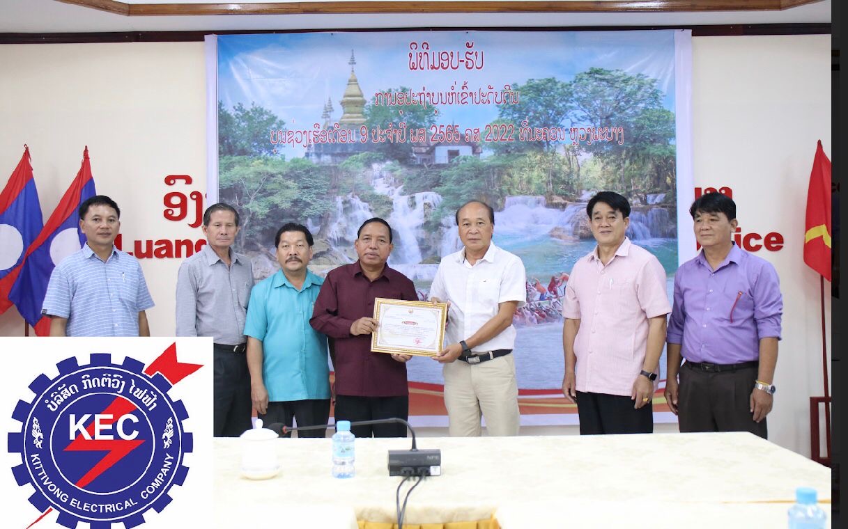 ວັນທີ 12 ສິງຫາ 2022 ນີ້ ນະຄອນຫຼວງພະບາງ ໄດ້ຈັດພິທີມອບໃບກຽດຕິຄຸນໃຫ້ບໍລິສັດກິດຕິວົງການໄຟຟ້າທີ່ໄດ້ປະກອບສ່ວນທາງດ້ານວັດຖຸປັດໃຈເປັນເງິນສົດ ມູນຄ່າ 2,000,000 ກີບເຂົ້າໃນການຈັດງານບຸນຫໍ່ເຂົ້າປະດັບດິນຊ່ວງເຮືອເດືອນເກົ້າ ( 9 ) ປະຈຳປີ ພສ 2565 ຄສ 2022 ທີ່ນະຄອນ-ຫຼວງພະບາງ ມໍລະດົກໂລກ.