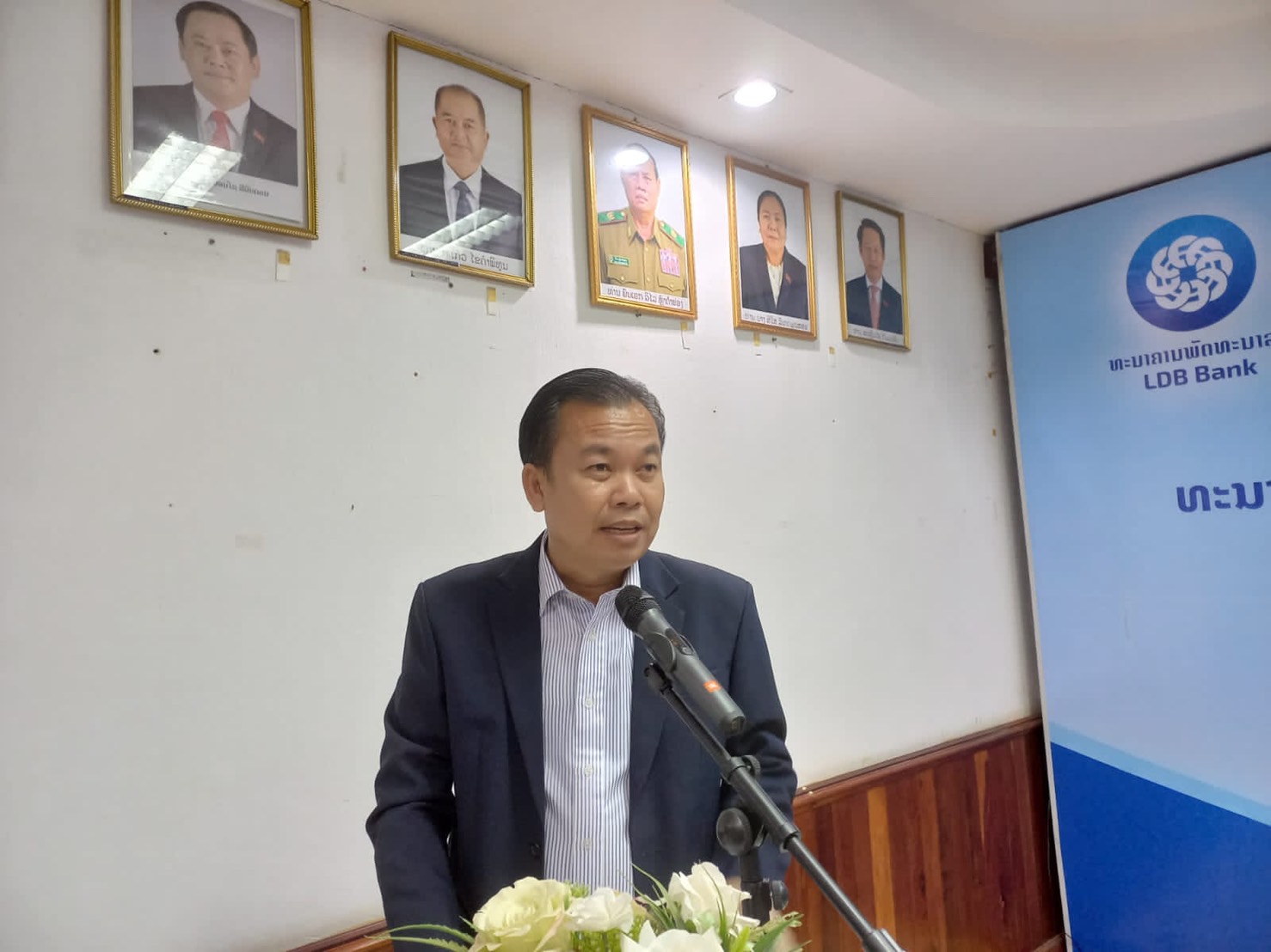 ໃນພິທີທ່ານ ຄໍາລຽນ ສິມມະວົງ ຫົວໜ້າທະນາຄານພັດທະນາລາວພາກຈໍາປາສັກໄດ້ກ່າວລາຍງານໃຫ້ຮູ້ວ່າ: ທະນາຄານພັດທະນາລາວເປັນທະນາຄານທຸລະກິດລັດ( ທະນາຄານຮ່ວມທຶນລະຫວ່າງລັດຖະບານຕາງໜ້າໂດຍກະຊວງການເງິນຖືຮຸ້ນ 30% ແລະບໍລິສັດ ຈະເລີນເຊກອງ ພະລັງງານ ຈໍາກັດ ຖືຮຸ້ນ 70%), ທພລ ດໍາເນີນທຸລະກິດທະນາຄານພາຍໃຕ້ການຄຸ້ມຄອງຮອບດ້ານຂອງທະນາຄານແຫ່ງ ສປປ ລາວ ເພື່ອດໍາເນີນທຸລະກິດໃຫ້ສອດຄ່ອງຕາມກົດໝາຍຂອງ ສປປ ລາວ, ພາຍຫລັງທີ່ມີຂາຮຸ້ນໃຫຍ່ເຂົ້າມາຮ່ວມທຶນໄດ້ເຮັດໃຫ້ຖານະການເງິນຂອງພວກເຮົາເຂັ້ມແຂງຂື້ນກວ່າເກົ່າ ແລະລະບົບການຊໍາລະສະສາງເຄື່ອງມືທັນສະໄໝກໍ່ໄດ້ຮັບການປັບປຸງດີຂື້ນ.
