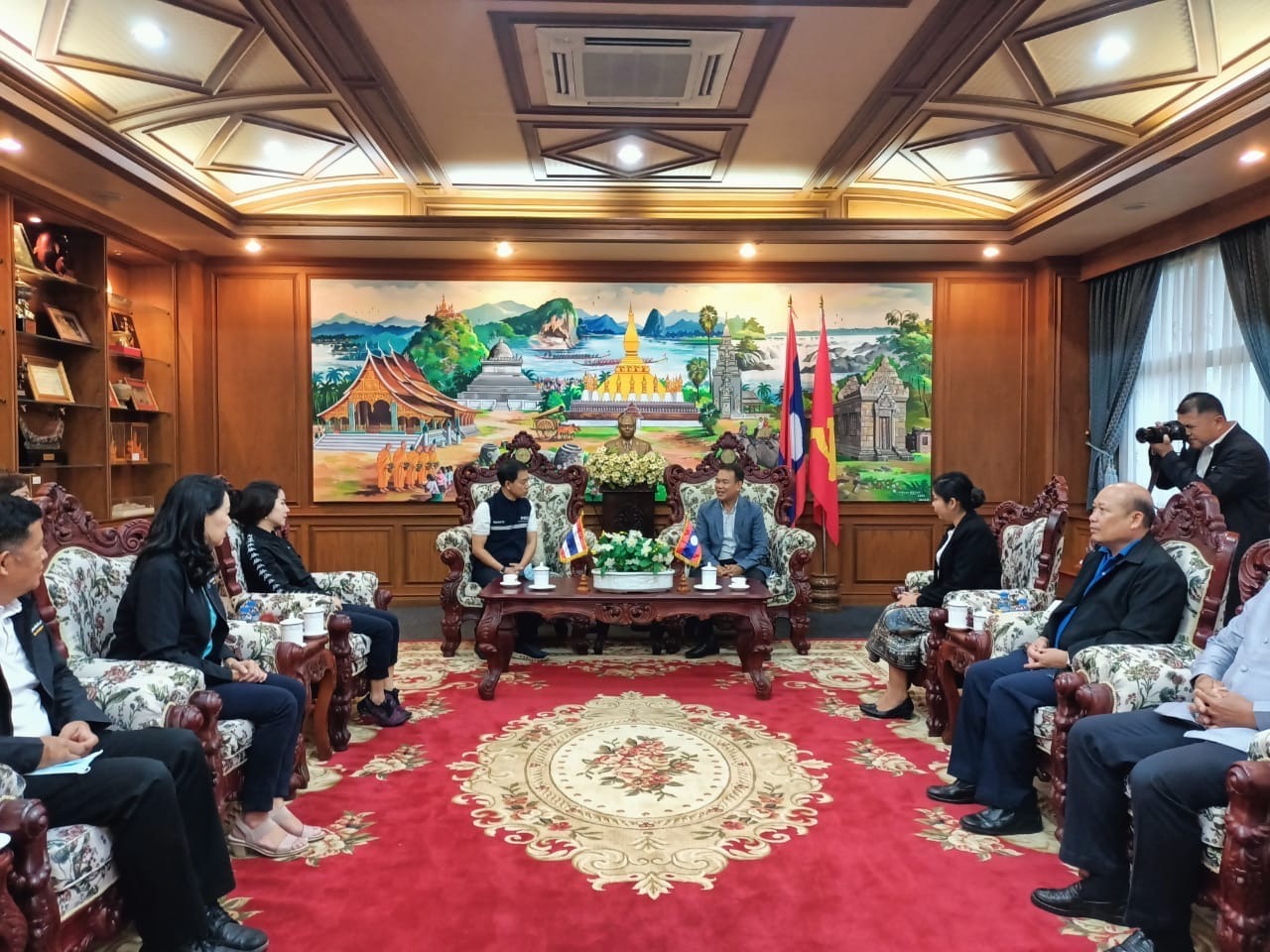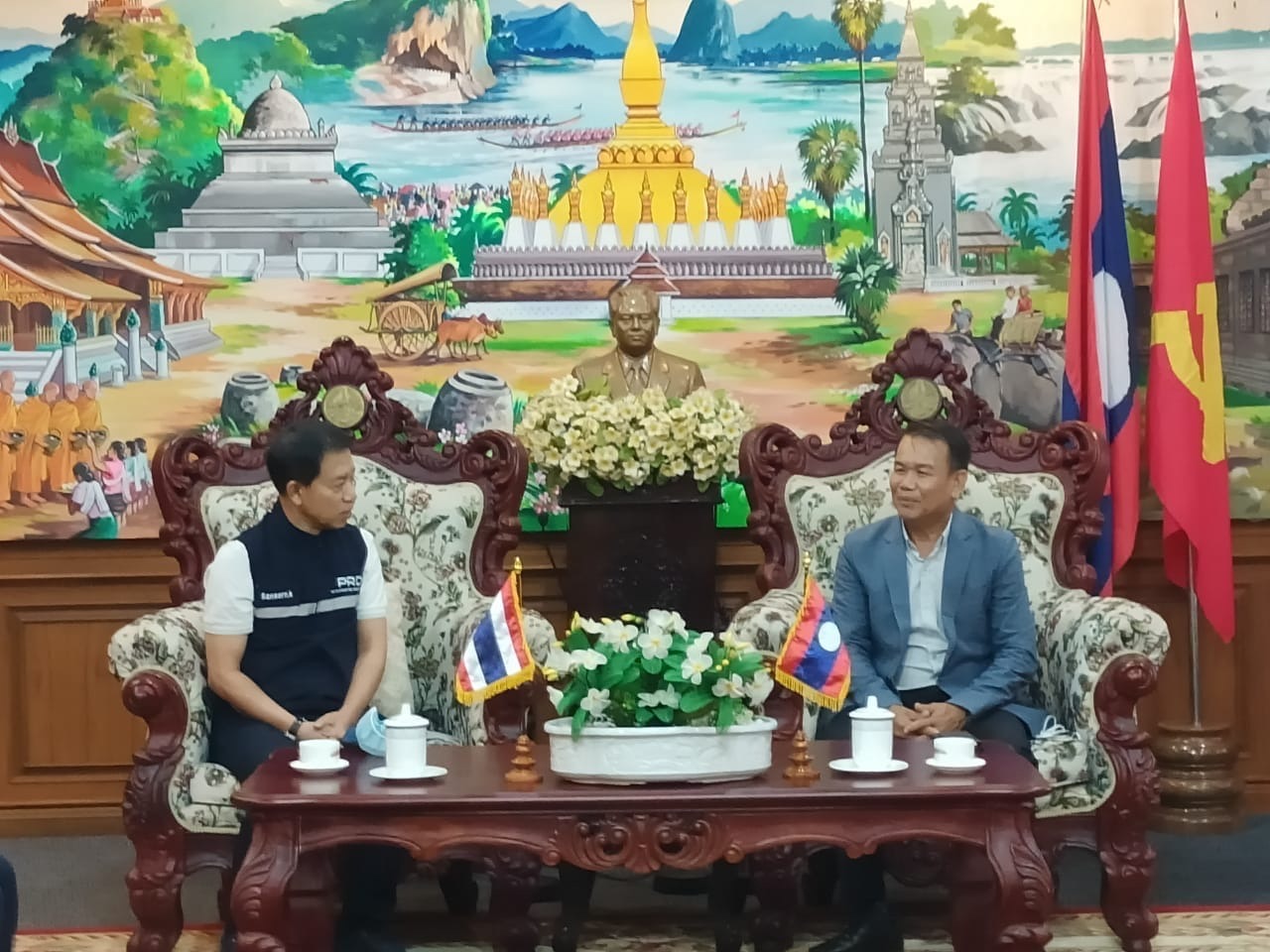 ທ່ານ ໂສມ ບຸດຕະກຸນ ຮອງເຈົ້າແຂວງຈຳປາສັກ ໄດ້ເປັນກຽດຕ້ອນຮັບ ພົນໂທ ສັນເສີນ ແກ້ວກຳເນີດ ອະທິບໍດີກົມປະຊາສຳພັນ ແຫ່ງປະເທດໄທ ພ້ອມຄະນະສື່ມວນຊົນວິທະຍຸ - ໂທລະພາບ ແລະສື່ອອນລາຍພາກກາງ ແລະພາກອີສານຕອນໃຕ້. ໃນວັນທີ 17 ກັນຍາ 2022 ທີ່ຫ້ອງວ່າການແຂວງຈໍາປາສັກ.