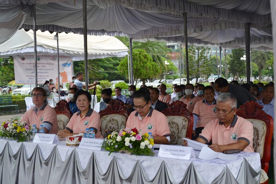 ພິທີໂຮມຊຸມນຸມສະເຫຼີມສະຫຼອງວັນຕ້ານພະຍາດວໍ້ໂລກປີນີ້ພາຍໃຕ້ຄໍາຂວັນ ”ຮ່ວມແຮງຮ່ວມໃຈກັນຕ້ານພະຍາດວໍ້ເພື່ອບໍ່ໃຫ້ມີຜູ້ເສຍຊີວິດ” ຈັດຂຶ້ນໃນວັນທີ 28 ກັນຍາ 2022 ທີ່ສວນສາທາລະນະເຈົ້າຟ້າງຸ່ມນະຄອນຫຼວງວຽງຈັນ ໂດຍການເຂົ້າຮ່ວມຂອງທ່ານ ນາງ ຣັດສະໝີ ວົງຄໍາຊາວ ຮອງຫົວໜ້າກົມຄວບຄຸມພະຍາດຕິດຕໍ່ ກະຊວງສາທາລະນະສຸກ; ທ່ານ Matthew Scott SHORTUS, HTM/NTD Team Leader ອົງການອະນາໄມ; ມີທ່ານຫົວໜ້າກົມລ້ຽງສັດ ແລະ ການປະມົງ, ກະຊວງກະສິກຳ ແລະປ່າໄມ້; ຜູ້ຕາງໜ້າອົງການອາຫານ ແລະການກະເສດ (FAO) ປະຈໍາລາວພ້ອມດ້ວຍພະນັກງານສັດຕະວະແພດ ແລະພາກສ່ວນກ່ຽວຂ້ອງເຂົ້າຮ່ວມ.
