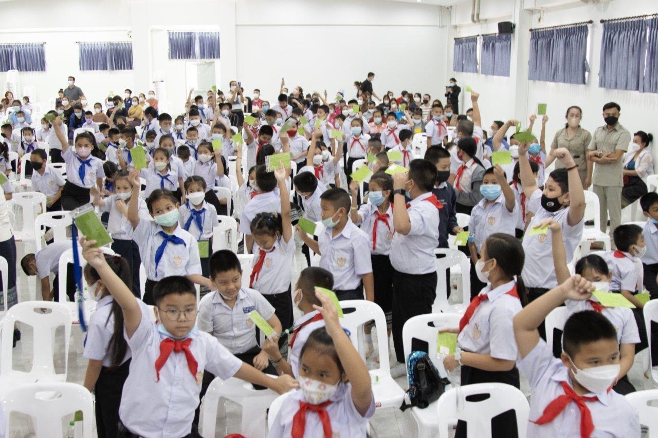 ໂອກາດນີ້, ທ່ານ ນາງ ຂັນທະລີ ສີຣິພົງພັນ ຮອງລັດຖະມົນຕີກະຊວງສຶກສາທິການ ແລະກິລາກ່າວວ່າ: ລັດຖະບານແຫ່ງ ສປປ ລາວ ກໍໄດ້ມີການເພີ່ມທະວີຄວາມເອົາໃຈໃສ່ປຸກລະດົມຂະບວນການສັກວັກຊິນກັນພະຍາດໂຄວິດ-19 ໃຫ້ແກ່ເດັກນ້ອຍ, ໂດຍສະເພາະເດັກນັກຮຽນເພື່ອສ້າງພູມຄຸ້ມກັນເພີ່ມຕື່ມຈາກພະຍາດດັ່ງກ່າວເເກ່ນັກຮຽນ, ພົນລະເມືອງລາວ ແລະຜູ້ດຳລົງຊີວິດຢູ່ ສປປ ລາວ ທຸກຄົນ.