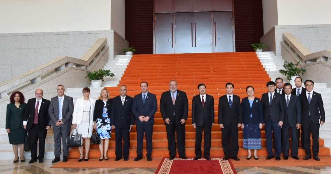 ໃນຕອນເຊົ້າວັນທີ 3 ຕຸລາ 2022, ທີ່ຫ້ອງວ່າການສູນກາງພັກ, ສະຫາຍທອງລຸນສີສຸລິດ, ປະທານປະເທດແຫ່ງສາທາລະນະລັດປະຊາທິປະໄຕປະຊາຊົນລາວ ໄດ້ຕ້ອນຮັບການເຂົ້າຢ້ຽມຂໍ່ານັບ ຂອງສະຫາຍມານູເອັນມາເຣໂຣກຣູຊ໌ (Manuel Marrero Cruz), ນາຍົກລັດຖະມົນຕີ ແຫ່ງສາທາລະນະລັດກູບາ ໃນໂອກາດເດີນທາງຢ້ຽມຢາມສາທາລະນະລັດປະຊາທິປະໄຕປະຊາຊົນລາວຢ່າງເປັນທາງການໃນວັນທີ 2-4 ຕຸລາ 2022.