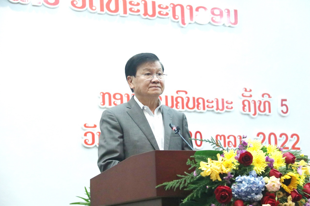 ກອງປະຊຸມຄົບຄະນະ ປະຈໍາປີ ຄັ້ງທີ 5 ຂອງຄະນະບໍລິຫານງານສູນກາງພັກສະໄໝທີ XI ໄດ້ດໍາເນີນມາ ເປັນເວລາ 6 ວັນ, ແຕ່ວັນທີ 13-20 ຕຸລາ 2022 ພາຍໃຕ້ການເປັນປະທານຂອງ ສະຫາຍ ທອງລຸນ ສີສຸລິດ ເລຂາທິການໃຫຍ່ຄະນະບໍລິຫານງານສູນກາງພັກ ປະຊາຊົນປະຕິວັດລາວ ອັດລົງດ້ວຍຜົນສຳເລັດອັນຈົບງາມ ໃນວັນທີ 20 ຕຸລາ 2022 ທີ່ຫ້ອງວ່າການສູນກາງພັກ.