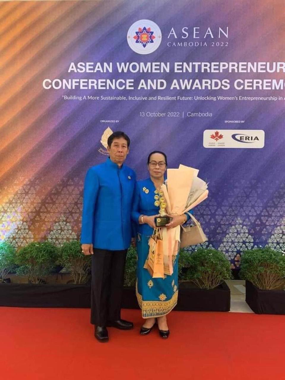 ທ່ານ ນາງ ອິນແປງ ຊາມຸນຕີ ປະທານສະມາຄົມມັນຕົ້ນລາວປະທານສະພາການຄ້າ ແລະອຸດສາຫະກຳແຂວງສາລະວັນ ປະທານບໍລິສັດ ປາກຊ່ອງພັດທະນາ ຂາຂາອອກ-ຂາເຂົ້າ ຈໍາກັດຜູ້ດຽວ ແລະ ປະທານບໍລິສັດ ສາລະວັນພັດທະນາ ຂາຂາອອກ-ຂາເຂົ້າ ຈຳກັດຜູ້ດຽວ ໜຶ່ງໃນນັກທຸລະກິດຍິງລາວເຮົາທີ່ໄດ້ຮັບລາງວັນຜູ້ນຳຍິງທຸລະກິດດີເດັ່ນອາຊຽນ (ASEAN WOMEN LEADERS SUMMIT 2022) ຮ່ວມກັບນັກທຸລະກິດຍິງຫຼາຍປະເທດໃນອາຊຽນເຊິ່ງພິທີມອບລາງວັນຈັດຂຶ້ນວັນທີ 13 ຕຸລາ 2022 ທີ່ປະເທດກຳປູເຈຍ.