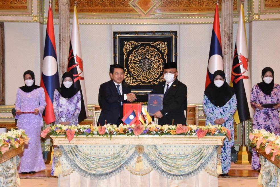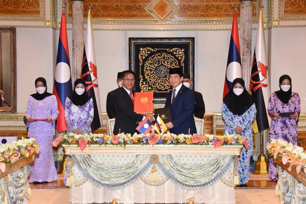 ພາຍຫຼັງສໍາເລັດການພົບປະສອງຝ່າຍ, ພະນະທ່ານ ປະທານປະເທດ ທອງລຸນ ສີສຸລິດ ແລະ ສົມເດັດ ຊຸນຕານ ຮາຈິ ຮັດຊານານ ໂບນເກຍ ໄດ້ເຂົ້າຮ່ວມເປັນສັກຂີພິຍານການລົງນາມບົດບັນທຶກຄວາມເຂົ້າໃຈ 2 ສະບັບ ຄື: 1) ບົດບັນທຶກຄວາມເຂົ້າໃຈ ວ່າດ້ວຍການຮ່ວມມືດ້ານກະສິກໍາ ລະຫວ່າງ ກະຊວງກະສິກໍາ ແລະ ປ່າໄມ້ ຂອງ ສປປ ລາວ ແລະກະຊວງຊັບພະຍາກອນ ແລະ ການທ່ອງທ່ຽວ ຂອງບຣູໄນ; ແລະ 2) ບົດບັນທຶກຄວາມເຂົ້າໃຈວ່າດ້ວຍການຮ່ວມມືດ້ານພະລັງງານລະຫວ່າງກະຊວງພະລັງງານ ແລະ ບໍ່ແຮ່ ຂອງ ສປປ ລາວ ແລະກົມພະລັງງານ, ຫ້ອງວ່າການສໍານັກງານນາຍົກລັດຖະມົນຕີ ຂອງບຣູໄນ.