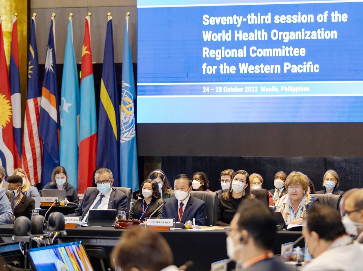 ໃນລະຫວ່າງວັນທີ 24-28 ຕຸລາ 2022 ທ່ານ ປອ. ດຣ. ບຸນແຝງ ພູມມະໄລສິດ, ລັດຖະມົນຕີກະຊວງສາທາລະນະສຸກໄດ້ເປັນປະທານກອງປະຊຸມປະຈຳປີຄະນະກຳມະການຂັ້ນພາກພື້ນຂອງອົງການອະນາໄມໂລກ (WHO) ປະຈໍາພາກພື້ນປາຊີຟິກຕາເວັນຕົກຢູ່ ມະນີລາ, ປະເທດຟິລິບປິນ. ໃນກອງປະຊຸມຄັ້ງນີ້ບັນດາລັດຖະມົນຕີສາທາລະນະສຸກ ແລະພະນັກງານຂັ້ນອາວຸໂສຈາກປະເທດຕ່າງໆໄດ້ຍົກໃຫ້ເຫັນບັນດາບັນຫາດ້ານສາທາລະນະສຸກທີ່ສຳຄັນ ແລະເປັນບູລິມະສິດສຳຫລັບ 37 ປະເທດ ແລະບັນດາປະເທດໃນຂົງເຂດ.