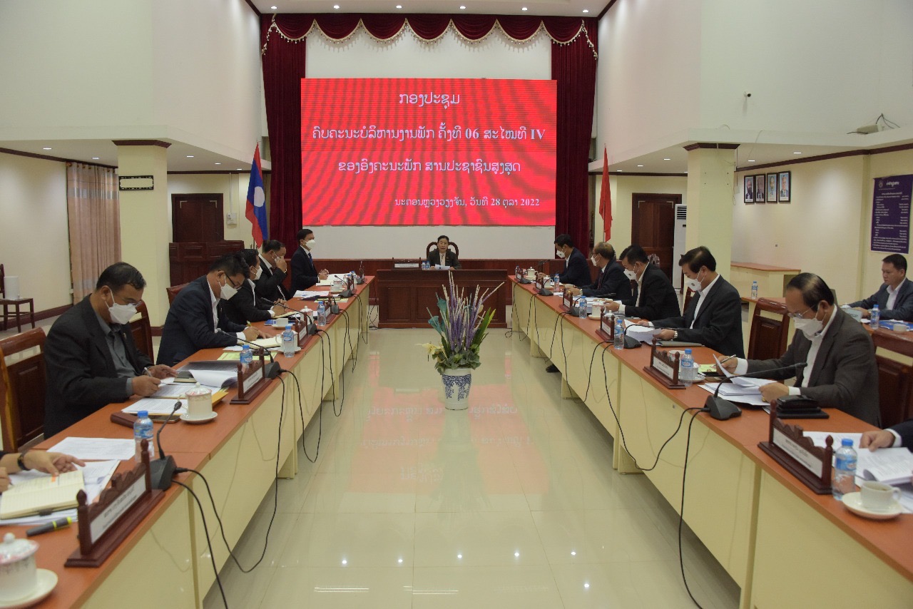 ໃນວັນທີ 28 ຕຸລາ 2022 ທີ່ສານປະປະຊົນສູງສຸດຈັດກອງປະຊຸມຄະບໍລິຫານງານພັກຄັ້ງທີ 6 ສະໄໝທີ IV ອົງຄະນະພັກສານປະຊາຊົນ,ພາຍໃຕ້ການເປັນປະທານຂອງສະຫາຍ ນາງ ວຽງທອງ ສີພັນດອນ ຄະນະເລຂາທິການສູນກາງພັກເລຂາຄະນະພັກ ປະທານສານປະຊາຊົນສູງສຸດຊຶ່ງມີຮອງເລຂາຄະນະພັກຄະນະປຳຈຳພັກ ແລະຄະນະບໍລິຫານງານພັກເຂົ້າຮ່ວມ.