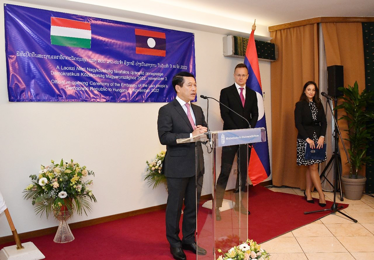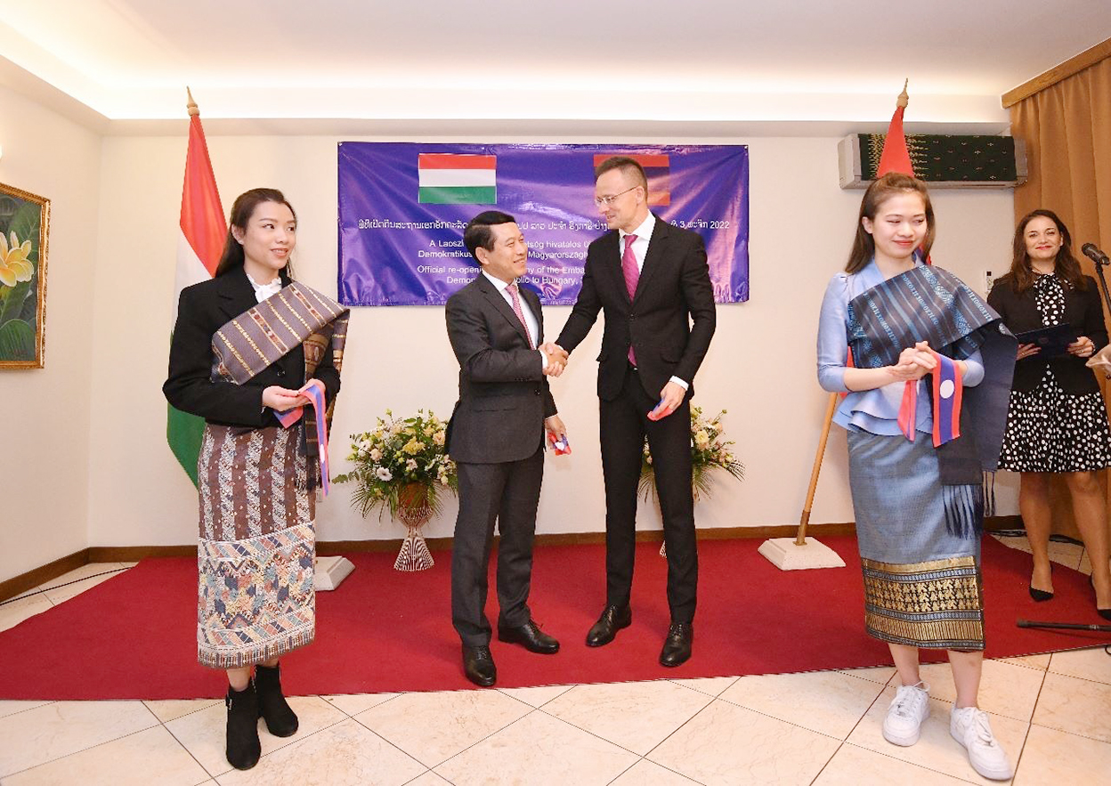 ໂດຍອີງຕາມການຕົກລົງເຫັນດີຂອງລັດຖະບານ ແຫ່ງ ສປປ ລາວ ແລະຮົງກາຣີ ກ່ຽວກັບການເປີດສະຖານເອກອັກຄະລັດຖະທູດ ແຫ່ງ ສປປ ລາວ ປະຈຳ ຮົງກາຣີ ຄືນໃໝ່, ໃນວັນທີ 3 ພະຈິກ ທີ່ຜ່ານມາ ທ່ານ ສະເຫຼີມໄຊ ກົມມະສິດ ຮອງນາຍົກລັດຖະມົນຕີ, ລັດຖະມົນຕີກະຊວງການຕ່າງປະເທດ ແຫ່ງ ສປປ ລາວ ແລະ ທ່ານ ປີເຕີ ຊີຢາໂຕ (Péter SZIJJÁRTÓ) ລັດຖະມົນຕີກະຊວງການຕ່າງປະເທດ ແລະການຄ້າ ຮົງກາຣີ ໄດ້ເຂົ້າຮ່ວມພິທີເປີດສະຖານເອກອັກຄະລັດຖະທູດ ແຫ່ງ ສປປ ລາວ ປະຈຳ ຮົງກາຣີ ຄືນໃໝ່ຢ່າງເປັນທາງການໂດຍມີບັນດາທູຕານຸທູດ, ຂອງສອງຝ່າຍ ແລະແຂກຖືກເຊີນຈາກພາກສ່ວນກ່ຽວຂ້ອງເຂົ້າຮ່ວມຢ່າງພ້ອມພຽງ.