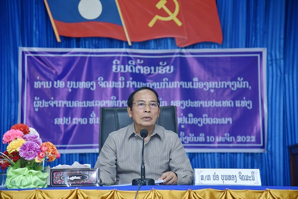 ໃນວັນທີ 10 ພະຈິກ 2022 ທ່ານ ບຸນທອງ ຈິດມະນີ ກຳມະການກົມການເມືອງສູນກາງພັກຜູ້ປະຈຳການຄະນະເລຂາທິການສູນກາງພັກຮອງປະທານປະເທດ ພ້ອມຄະນະໄດ້ເຄື່ອນໄຫວ ແລະເຮັດວຽກຢູ່ເມືອງບົວລະພາ ແຂວງຄຳມ່ວນ ໂດຍມີ ທ່ານ ວັນໄຊ ພອງສະຫວັນ ກຳມະການສູນກາງພັກ ເລຂາພັກແຂວງເຈົ້າແຂວງຄຳມ່ວນ ພ້ອມດ້ວຍຄະນະການນຳຂອງແຂວງ,ພະແນກການ, ຄະນະພັກ-ອຳນາດການປົກຄອງເມືອງ, ຕະຫຼອດຮອດພະນັກງານ ທະຫານ-ຕໍາຫຼວດ, ນັກຮຽນ ແລະ ປະຊາຊົນ ເມືອງບົວລະພາ ເຂົ້າຮ່ວມ.