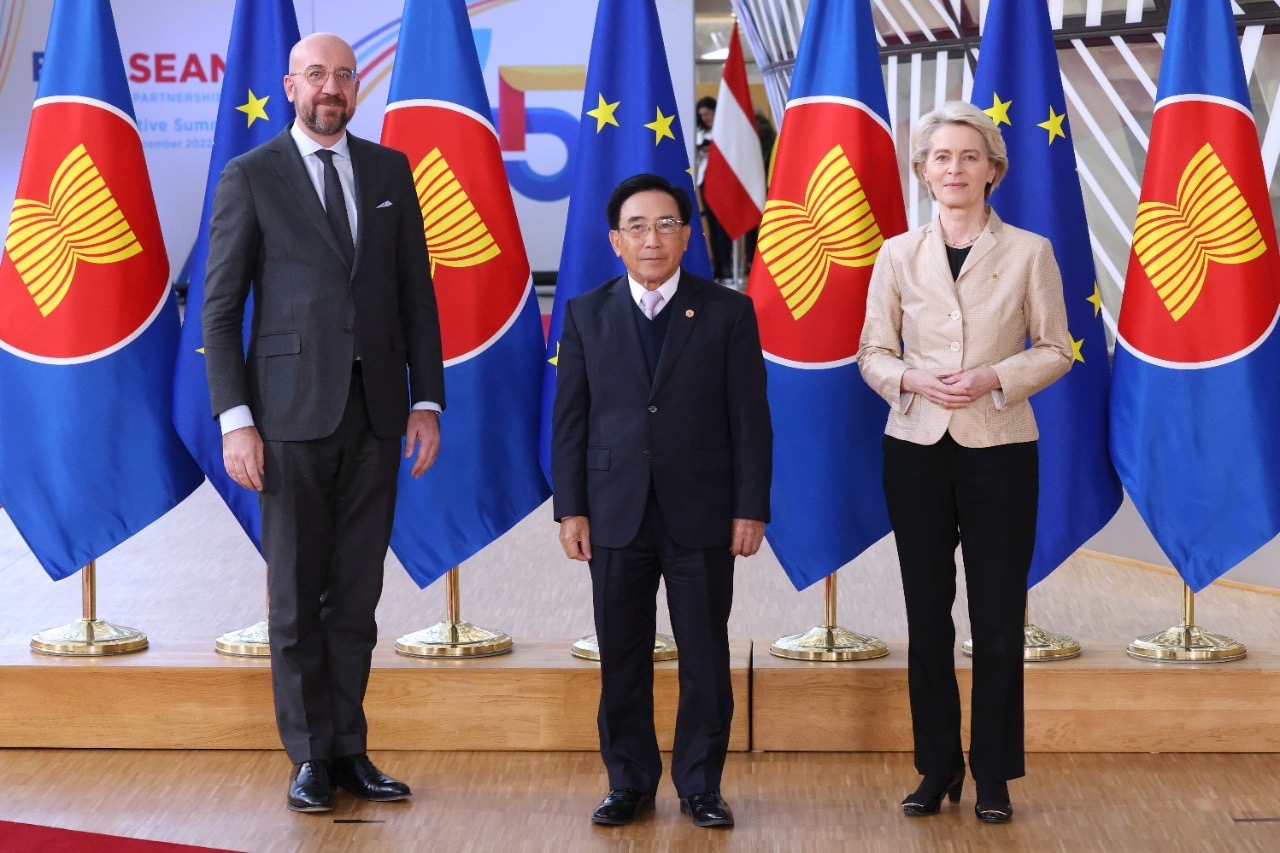 ໃນວັນທີ 14 ທັນວາ ທີ່ຜ່ານມາ ທ່ານ ພັນຄໍາ ວິພາວັນ ນາຍົກລັດຖະມົນຕີ ແຫ່ງ ສປປ ລາວ ໄດ້ນໍາພາຄະນະຜູ້ແທນລາວ ເຂົ້າຮ່ວມກອງປະຊຸມສຸດຍອດ ສະເຫຼີມສະຫຼອງການພົວພັນ ອາຊຽນ-ສະຫະພາບ ເອີຣົບ(ອາຊຽນ-ອີຢູ) ຄົບຮອບ 45 ປີ ທີ່ບຣຸກແຊນ, ປະເທດແບນຊິກ, ພາຍໃຕ້ການເປັນປະທານຮ່ວມຂອງ ກໍາປູເຈຍ ແລະ ອີຢູ.