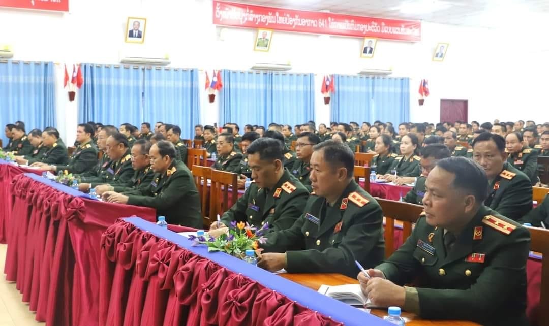 ໃນໂອກາດດຽວກັນ ທ່ານ ພັນເອກ ສອນແກ້ວ ຜາລີທອງ ຫົວໜ້າການເມືອງກອງພັນໃຫຍ່ 641, ໄດ້ລາຍງານໂດຍຫຍໍ້ສະພາບຈຸດພິເສດ ແລະ ໜ້າທີ່ການເມືອງຂອງກົມກອງ, ລວມທັງຜົນງານທີ່ຍາດມາໄດ້ຕະຫຼອດໄລຍະຜ່ານມາ, ຄະນະພັກ-ຄະນະບັນຊາກອງພັນໃຫຍ່ ໄດ້ເອົາໃຈໃສ່ປັບປຸງກໍ່ສ້າງກົມກອງໃຫ້ກາຍເປັນກົມກອງທີ່ມີລະບຽບວິໄນເຂັ້ມງວດ, ມີແບບແຜນທັນສະໄໝ ແລະສ້າງໃຫ້ກົມກອງກາຍເປັນກົມກອງ ປອດໃສ ເຂັ້ມແຂງ ໜັກແໜ້ນ ໃຫ້ສົມກັບເປັນກົມກອງແບບຢ່າງທາງດ້ານລະບຽບວິໄນ, ເຂັ້ມແຂງທາງດ້ານວຽກງານກຽມພ້ອມສູ້ຮົບ ແລະ ສູ້ຮົບມີໄຊ, ໄດ້ສຸມໃສ່ວຽກງານສຶກສາອົບຮົມການເມືອງນຳພາແນວຄິດເປັນກົກ, ຈັດຕັ້ງເຝິກແອບຮ່ຳ ຮຽນວິຊາສະເພາະ, ສິລະປະຍຸດ-ຍຸດທະວິທີ ໃຫ້ມີຄວາມຊຳນານຄ່ອງແຄ້ວ, ຍົກສູງດ້ານລະບຽບແບບແຜນ, ວຽກງານເຮັດໃຫ້ສະ ພາບມີຄວາມສະຫງົບ, ໄດ້ເອົາໃຈໃສ່ວຽກງານກໍ່ສ້າງຮາກຖານ ການເມືອງໃນຂອບເຂດກົມກອງຕັ້ງທັບ, ປະສານສົມທົບກັບອຳ ນາດການປົກຄອງບ້ານຊຸກຍູ້ຊ່ວຍເຫຼືອການແກ້ໄຂຊີວິດການເປັນຢູ່ຂອງປະຊາຊົນໃນຂອບເຂດດັ່ງກ່າວໃນຍາມພົບຄວາມຫຍຸ້ງຫຍາກ.