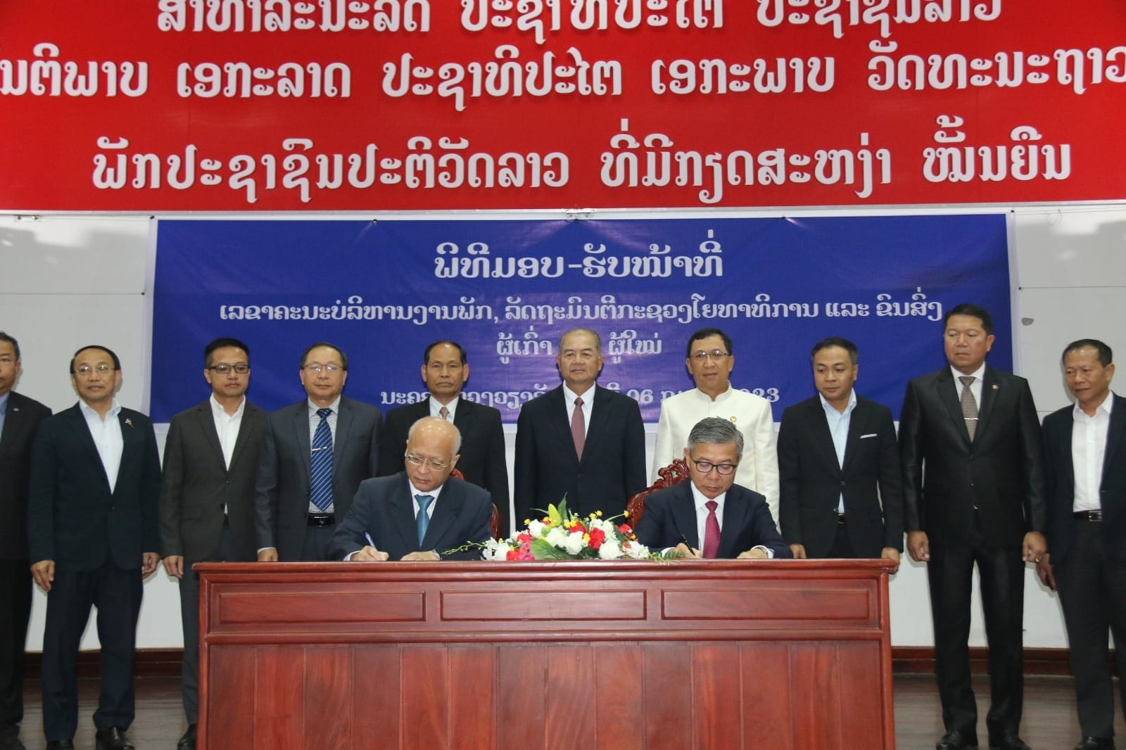 ພິທີມອບ-ຮັບໜ້າທີ່ ລະຫວ່າງ ທ່ານ ວຽງສະຫວັດ ສີພັນດອນ ກໍາມະການສູນກາງພັກ, ເລຂາຄະນະບໍລິຫານງານພັກ, ລັດຖະມົນຕີກະຊວງ ໂຍທາທິການ ແລະ ຂົນສົ່ງ(ຍທຂ) ຜູ້ເກົ່າ ໄປຮັບໜ້າທີ່ໃໝ່ຢູ່ ແຂວງຫລວງນໍ້າທາ ແລະ ທ່ານ ງາມປະສົງ ເມືອງມະນີ ເລຂາຄະນະບໍລິຫານງານພັກ ຄະນະປະຈໍາພັກ, ລັດຖະມົນຕີກະຊວງ ຍທຂ ຜູ້ໃໝ່ ຈັດຂຶ້ນໃນວັນທີ 6 ກຸມພາ 2023 ທີ່ ກະຊວງດັ່ງກ່າວ ໂດຍການເປັນກຽດເຂົ້າຮ່ວມຂອງ ທ່ານ ກິແກ້ວ ໄຂຄໍາພິທູນ ກໍາມະການກົມການເມືອງສູນກາງພັກ, ຮອງນາຍົກລັດຖະມົນຕີ, ມີບັນດາຮອງລັດຖະມົນຕີ, ຫົວໜ້າກົມ, ຮອງກົມ, ພະນັກງານຫຼັກແຫຼ່ງ ແລະພາກສ່ວນກ່ຽວຂ້ອງເຂົ້າຮ່ວມ.