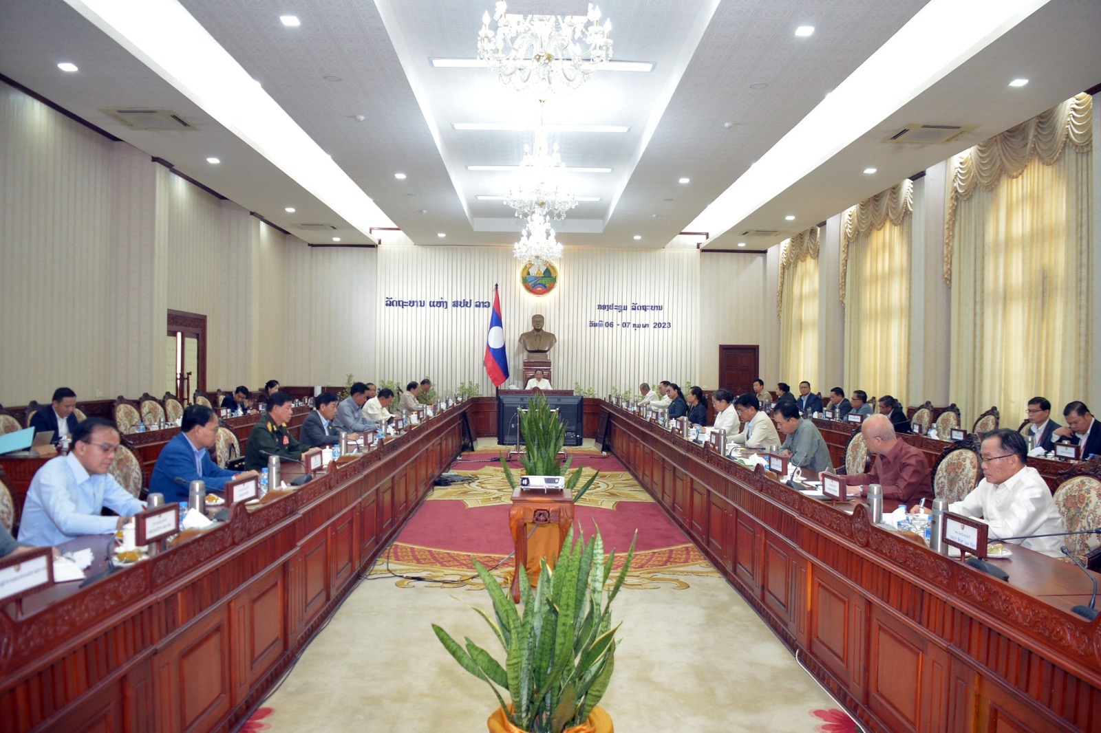ໃນວັນທີ 7 ກຸມພາ 2023, ທ່ານ ນ. ທິບພະກອນ ຈັນທະວົງສາ, ຮອງລັດຖະມົນຕີ, ຮອງຫົວໜ້າຫ້ອງວ່າການສຳນັກງານນາຍົກລັດຖະມົນຕີ, ຜູ້ປະຕິບັດໜ້າທີ່ໂຄສົກລັດຖະບານໄດ້ຖະແຫຼງຂ່າວກ່ຽວກັບຜົນກອງປະຊຸມລັດຖະບານສະໄໝສາມັນປະຈຳເດືອນມັງກອນ 2023 ເນືອໃນຂອງບົດຖະແຫຼງຂ່າວຂຽນວ່າ: ກອງປະຊຸມລັດຖະບານສະໄໝສາມັນ ປະຈຳເດືອນມັງກອນ 2023 ໄດ້ໄຂຂຶ້ນຢ່າງເປັນການ ໃນຕອນເຊົ້າຂອງວັນທີ 6 ກຸມພາ ທີ່ຜ່ານມາ ແລະ ໄດ້ອັດລົງໃນຕອນເຊົ້າວັນທີ 7 ກຸມພາ 2023 ທີ່ສຳນັກງານນາຍົກລັດຖະມົນຕີ, ພາຍໃຕ້ການເປັນປະທານຂອງທ່ານ ສອນໄຊ ສີພັນດອນ, ນາຍົກລັດຖະມົນຕີ; ມີບັນດາທ່ານຮອງນາຍົກລັດຖະມົນຕີ ແລະສະມາຊິກລັດຖະບານເຂົ້າຮ່ວມຢ່າງພ້ອມພຽງ.