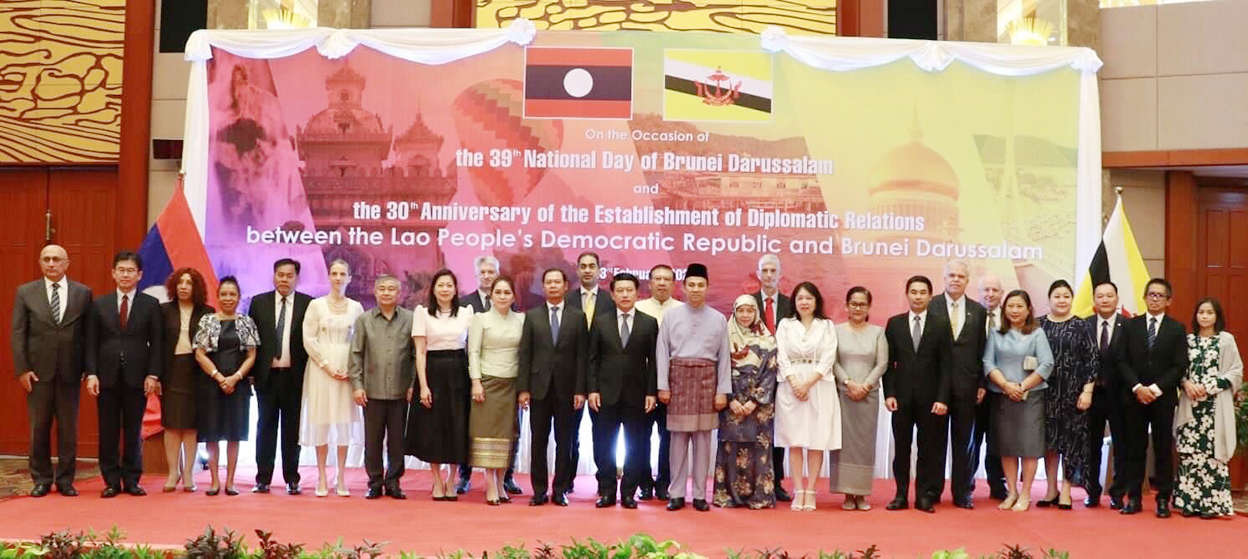 ສະຖານເອກອັກຄະລັດຖະທູດ ແຫ່ງ ບຣູໄນ ດາຣູຊາລາມ ປະຈໍາ ສປປ ລາວ ສະເຫລີມສະຫລອງວັນຊາດ ບຣູໄນ ດາຣູຊາລາມ ຄົບຮອບ 39 ປີ ແລະວັນສ້າງຕັ້ງສາຍພົວພັນການທູດ ລະຫວ່າງ ສປປ ລາວ ແລະ ບຣູໄນ ດາຣູຊາລາມ ຄົບຮອບ 30 ໃນວັນທີ 23 ກຸມພາ 2023, ທີ່ນະຄອນຫລວງວຽງຈັນ ໂດຍການເປັນປະທານຂອງ ທ່ານ ນາອິມ ຊາເລ ເອກອັກຄະລັດຖະທູດ ແຫ່ງ ບຣູໄນ ດາຣູຊາລາມ ປະຈໍາ ສປປ ລາວ ພ້ອມດ້ວຍພັນລະຍາ ແລະເປັນກຽດເຂົ້າຮ່ວມພິທີຂອງທ່ານ ສະເຫລີມໄຊ ກົມມະສິດ ຮອງນາຍົກລັດຖະມົນຕີ, ລັດຖະມົນຕີກະຊວງການຕ່າງປະເທດ ແຫ່ງ ສປປ ລາວ, ມີທ່ານຮອງລັດຖະມົນຕີ, ທູຕານຸທູດ, ຜູ້ຕາງໜ້າອົງການຈັດຕັ້ງສາກົນ ປະຈໍາ ສປປ ລາວ ແລະແຂກຖືກເຊີນເຂົ້າຮ່ວມ.