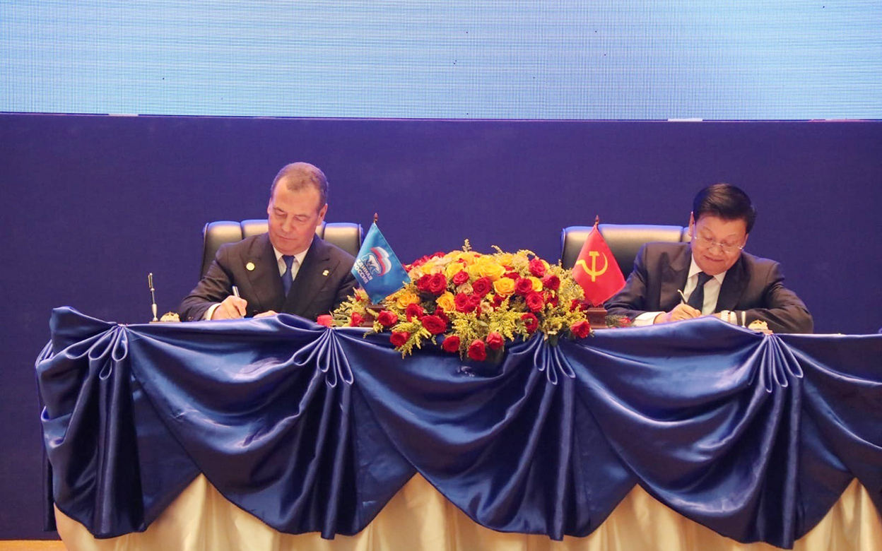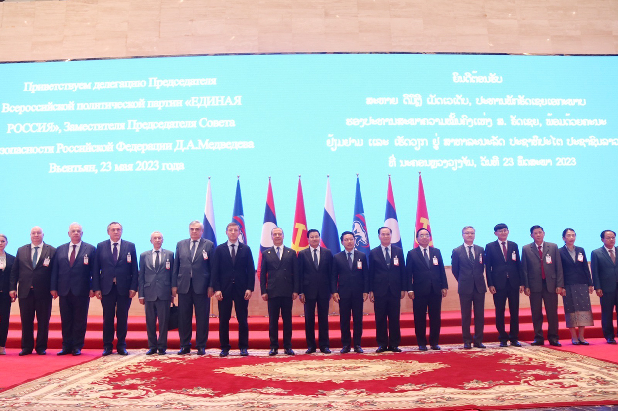 ໃນວັນທີ 23 ພຶດສະພາ 2023 ໂດຍຕອບສະໜອງຕາມການເຊື້ອເຊີນຂອງສະຫາຍ ທອງລຸນ ສີສຸລິດ ເລຂາທິການໃຫຍ່ຄະນະບໍລິຫານງານສູນກາງພັກປະຊາຊົນ ປະຕິວັດລາວ ປະທານປະເທດ ແຫ່ງ ສປປ ລາວ ຄະນະຜູ້ແທນຂັ້ນສູງຂອງພັກຣັດເຊຍເອກະພາບນໍາໂດຍສະຫາຍ ດີມີຕຣີ ເມັດເວເດັບ ປະທານພັກຣັດເຊຍເອກະພາບ ຮອງປະທານສະພາຄວາມໝັ້ນຄົງ ເເຫ່ງ ສະຫະພັນຣັດເຊຍ ພ້ອມດ້ວຍຄະນະ ໄດ້ມາເຄື່ອນໄຫວຢ້ຽມຢາມ ເເລະເຮັດວຽກ ຢູ່ ສປປ ລາວ.
