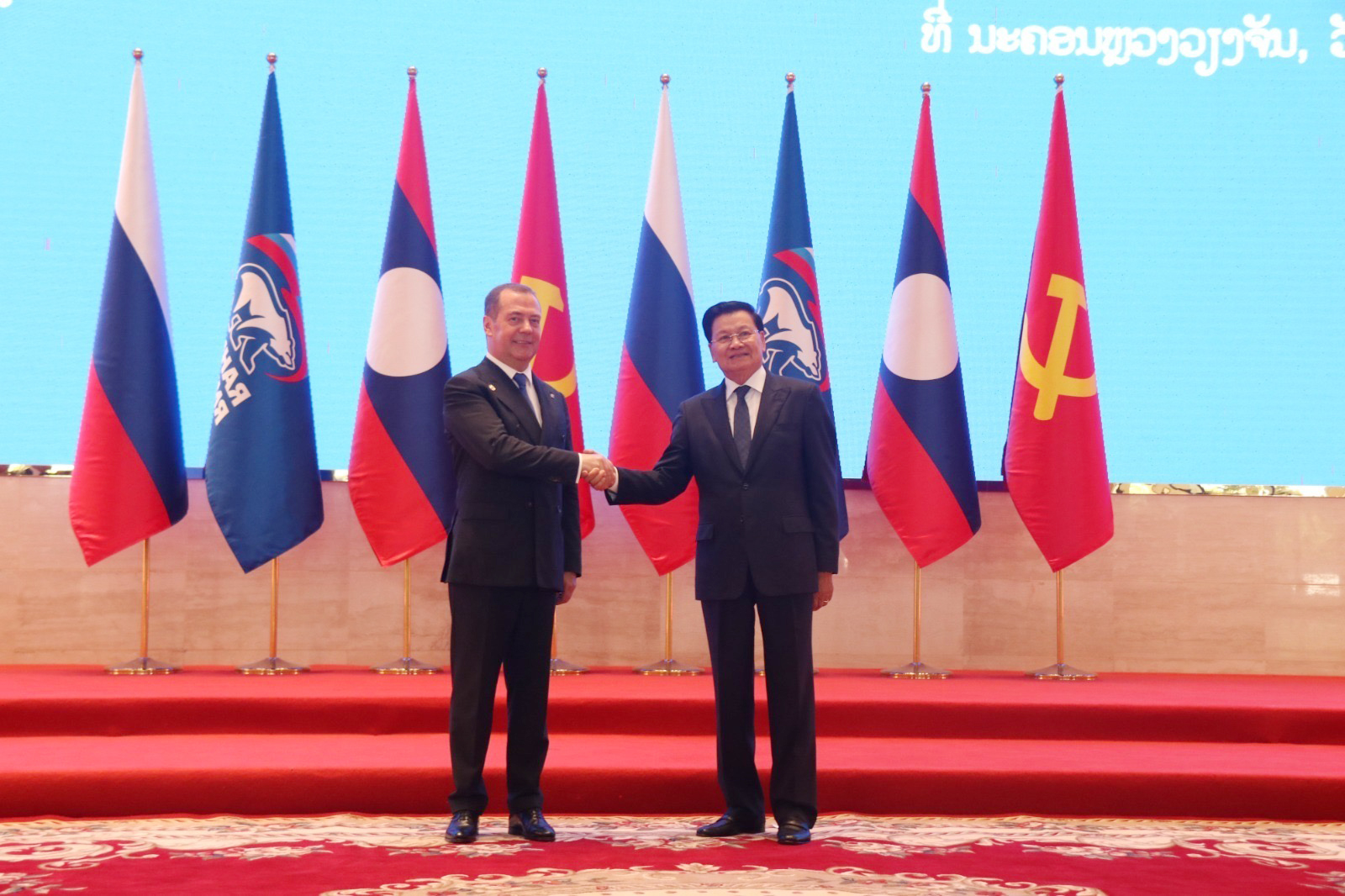 ສະຫາຍ ດີມີຕຣີ ເມັດເວເດັບ ໄດ້ສະແດງຄວາມຂອບໃຈຢ່າງສູງຕໍ່ການຕ້ອນຮັບອັນອົບອຸ່ນທີ່ເຕັມໄປດ້ວຍໄມຕີຈິດມິດຕະພາບຂອງບັນດາການນໍາຂັ້ນສູງຂອງພັກ ແລະ ລັດ ເເຫ່ງ ສປປ ລາວ ໃນຄັ້ງນີ້ໄດ້ປຶກສາຫາລືກ່ຽວກັບທິດທາງການພົວພັນຮ່ວມມື ລະຫວ່າງ ສອງພັກໃນຕໍ່ໜ້າເພື່ອນໍາເອົາຜົນປະໂຫຍດຕົວຈິງມາສູ່ປະຊາຊົນສອງປະເທດ ໄດ້ສະແດງຄວາມຊົມເຊີຍຕໍ່ຜົນສຳເລັດອັນໃຫຍ່ຫຼວງຮອບດ້ານ ທີ່ຍາດມາໄດ້ຕະຫຼອດໄລຍະຜ່ານມາໂດຍພາຍໃຕ້ການນໍາພາອັນຖືກຕ້ອງຂອງ ພັກ ປປ ລາວ ແລະ ສະແດງຄວາມເຊື່ອໝັ້ນວ່າ ປະຊາຊົນລາວ ຈະສືບຕໍ່ໄດ້ຮັບຜົນສຳເລັດອັນໃໝ່ໃຫຍ່ຫຼວງກວ່າເກົ່າ ໃນພາລະກິດແຫ່ງການປົກປັກຮັກສາ ແລະສ້າງສາພັດທະນາປະເທດຊາດເຮັດໃຫ້ປະເທດຊາດມີຄວາມມັ່ງຄັ່ງເຂັ້ມແຂງປະຊາຊົນຮັ່ງມີຜາສຸກ ສັງຄົມມີຄວາມປອງດອງ ປະຊາທິປະໄຕ ຍຸຕິທໍາ ແລະສີວິໄລ.