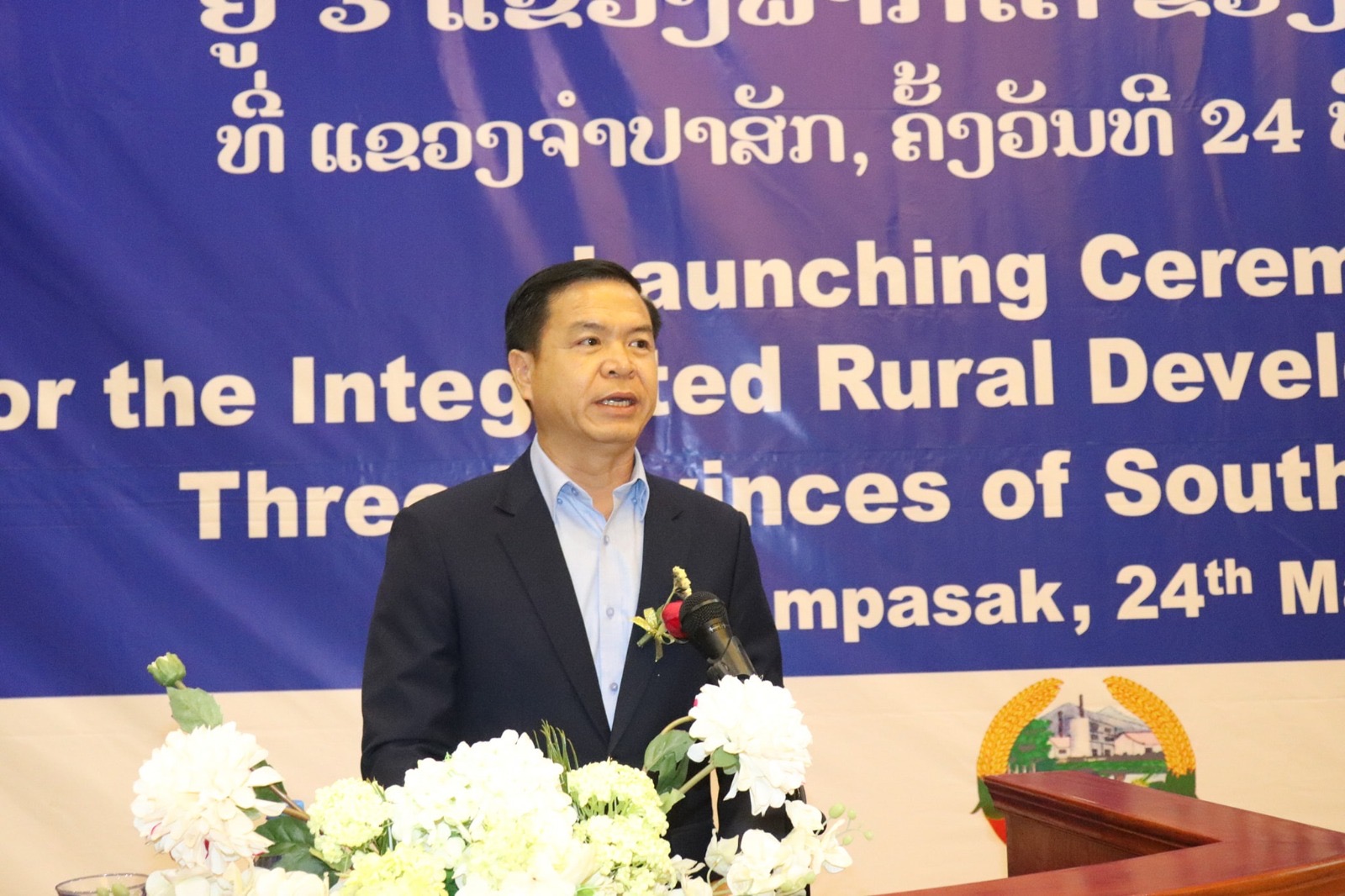 ພິທີຈັດຂຶ້ນຢູ່ໂຮງແຮມປາກຊ່ອງແດນງາມ ເມືອງປາກຊ່ອງ ແຂວງຈໍາປາສັກ ໂດຍການເຂົ້າຮ່ວມຂອງທ່ານ ກິແກ້ວ ສິງນາວົງ ຮອງລັດຖະມົນຕີກະຊວງກະສິກຳ ແລະ ປ່າໄມ້, ທ່ານນາງ ມີຢ່ອງຈິນ ຄິມ ຫົວໜ້າອົງການ KOICA ປະຈໍາ ສປປ ລາວ, ທ່ານ ສົມບູນ ເຮືອງວົງສາ ຮອງເຈົ້າແຂວງຈຳປາສັກ, ທ່ານ ຂັນຕີ ສີລະວົງສາ ຮອງເຈົ້າແຂວງໆເຊກອງ, ພ້ອມກັນນັ້ນກໍມີການນໍາຈາກພາກສ່ວນກ່ຽວຂ້ອງຂອງສູນກາງ, ຂອງແຂວງ, ເມືອງ, ຊ່ຽວຊານປະຈໍາໂຄງການ ແລະການຈັດຕັ້ງບ້ານ, ຄະນະພັດທະນາບ້ານເປົ້າໝາຍຂອງໂຄງການ 20 ບ້ານໃນ 3 ແຂວງ ຈໍາປາສັກ, ສາລະວັນ ແລະເຊກອງເຂົ້າຮ່ວມ.