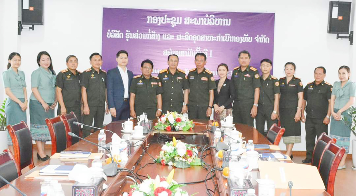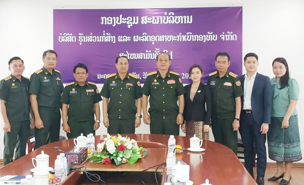 ກົມໃຫຍ່ພະລາທິການກອງທັບ, ໄດ້ຈັດພິທີປະກາດການແຕ່ງຕັ້ງສະພາບໍລິຫານບໍລິສັດຮຸ້ນສ່ວນກໍ່ສ້າງ ແລະຜະລິດອຸດສາຫະກໍາເບົາ ຈໍາກັດ ຂຶ້ນໃນວັນທີ 13 ມິຖຸນາ 2023 ພາຍໃຕ້ການເປັນປະທານຂອງສະຫາຍພົນຕີ ຄໍາເພັດ ສີຊານົນ ຫົວໜ້າກົມໃຫຍ່ພະລາທິການກອງທັບ, ມີຄະນະພາບໍລິຫານ ແລະພະນັກງານ, ວິຊາການທີ່ກ່ຽວຂ້ອງເຂົ້າຮ່ວມ. ໃນພິທີໄດ້ຜ່ານຂໍ້ຕົກລົງຂອງກົມໃຫຍ່ພະລາທິການກອງທັບວ່າດ້ວຍການການອະນຸມັດແຕ່ງຕັ້ງແຕ່ງຕັ້ງສະພາບໍລິຫານບໍລິສັດຮຸ້ນສ່ວນກໍ່ສ້າງ ແລະຜະລິດອຸດສາຫະກໍາເບົາ ຈໍາກັດ, ໃນນີ້ກົມໃຫຍ່ພະລາທິການກອງທັບຕົກລົງ, ແຕ່ງຕັ້ງ ພົນຈັດຕະວາ ວົງສັກ ສີພັນດອນ ຮອງຫົວໜ້າກົມໃຫຍ່ພະລາທິການກອງທັບ ເປັນປະທານສະພາບໍລິຫານ, ທ່ານນາງ ວຽງຄອນ ສິດສຸວົງ ປະທານບໍລິສັດໂຊກມຸງຄຸນການຄ້າ ແລະການລົງທຶນຈຳກັດ ເປັນຮອງປະທານສະພາບໍລິຫານ, ພັນເອກ ສົມໃຈ ຄໍາມະນີ ຫົວໜ້າກົມກໍ່ສ້າງ-ຄຸ້ມຄອງຊັບສິນກອງທັບ, ທ່ານ ສີສະຫວາດ ຈັນທະລັງສີ, ພັນໂທ ດວງສີ ແສງອາລຸນ, ທ່ານ ກາສີ ສາຍປະລີນຍາ ແລະທ່ານ ນາງ ສຸມົນຕີ ເຮືອງແສງເປັນກຳມະການ.