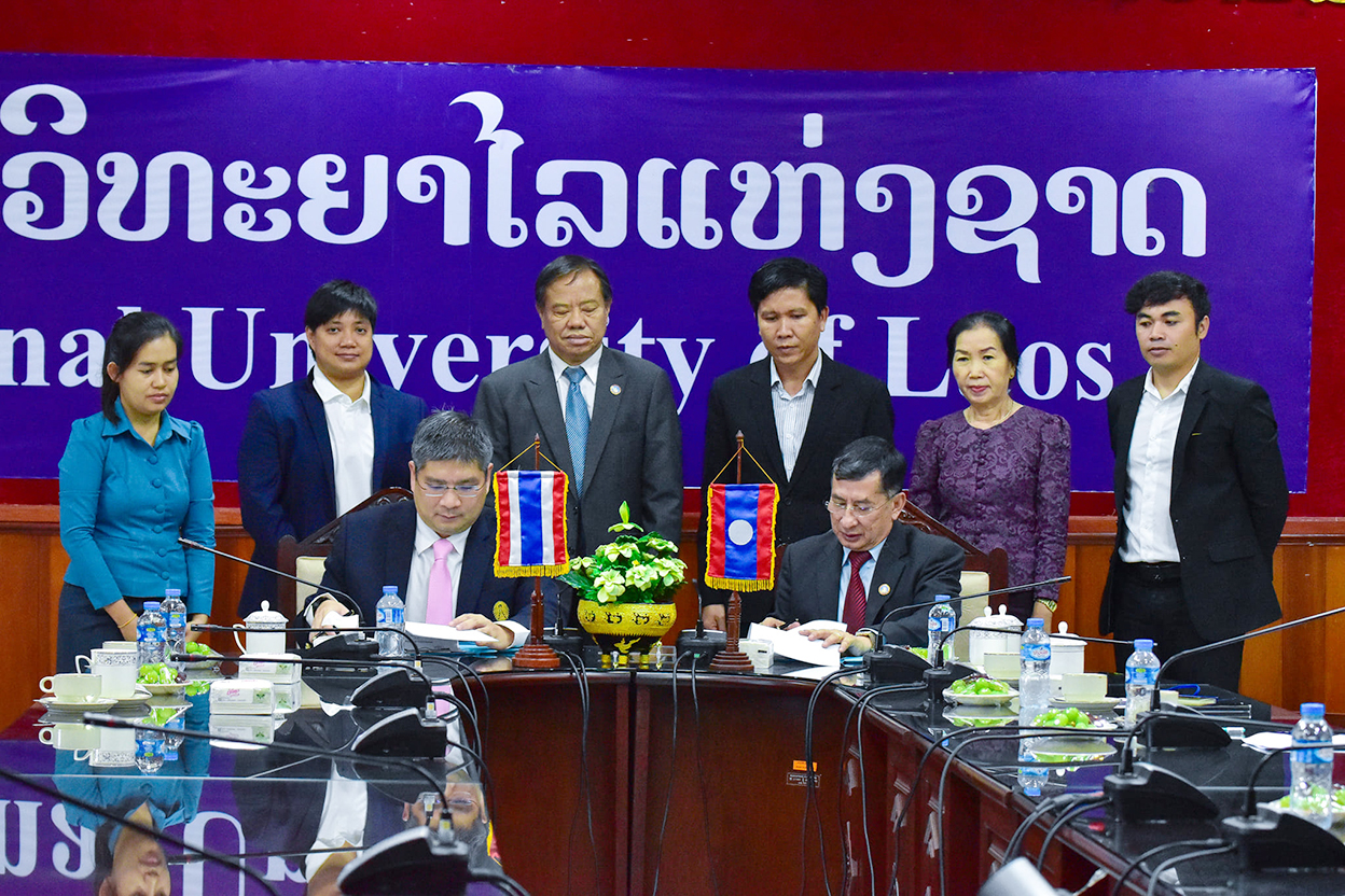 ພິທີເຊັນສັນຍາບົດບັນທຶກສັນຍາການຮ່ວມມື (MOA) ດັ່ງກ່າວໄດ້ມີຂຶ້ນວັນທີ 20 ມິຖຸນາ 2023 ທີ່ຫ້ອງການ ຄວກ ມະຫາວິທະຍາໄລແຫ່ງຊາດ, ລະຫວ່າງ ທ່ານ ປອ ອິນຕອງ ເລີດສິນໄຊ ຄະນະບໍດີ ຄະນະວິທະຍາສາດການກິລາ-ກາຍະກຳ ມະຫາວິທະຍາໄລແຫ່ງຊາດ ແລະທ່ານ ດຣ ໄຊພັດ ຣໍສິຣິຣັດ ຄະນະບໍດີ ຄະນະວິທະຍາສາດການກິລາ ມະຫາວິທະຍາໄລຈຸລາລົງ (ປະເທດໄທ), ໂດຍໃຫ້ກຽດເຂົ້າຮ່ວມເປັນສັກຂີພິຍານຂອງ ທ່ານ ຮສ.ປອ ອຸດົມ ພອນຄຳເພັງ ອະທິການບໍດີ ມະຫາວິທະຍາໄລແຫ່ງຊາດພ້ອມດ້ວຍບັນດາຮອງຄະນະບໍດີຂອງທັງສອງພາກສ່ວນ, ຄູອາຈານ ແລະພະນັກງານທີ່ດກ່ຽວຂ້ອງຢ່າງພ້ອມພຽງ.