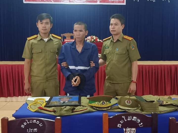 ທ້າວ ຈັນຄຳ ສອນລະວົງ ແມ່ນຜູ້ຖືກຫາທີ່ແອບອ້າງ ແລະປອມຕົວເປັນເຈົ້າໜ້າທີ່ກຳລັງ ປກສ ເພື່ອຮັບແລ່ນເອກະສານເອົາຄົນເຂົ້າຕຳຫຼວດເຮັດໃຫ້ມີຜູ້ຫຼົງເຊື່ອຖືກເສຍຫາຍຫຼາຍຄົນ ລວມມູນຄ່າເປັນເງິນ 340.000 ບາດ, 1.500 ໂດລາ ແລະ 1.300 ລ້ານກວ່າກີບ; ຖືກຈັບຕົວມາດຳເນີນຄະດີໃນວັນທີ 23 ສິງຫາ 2023.