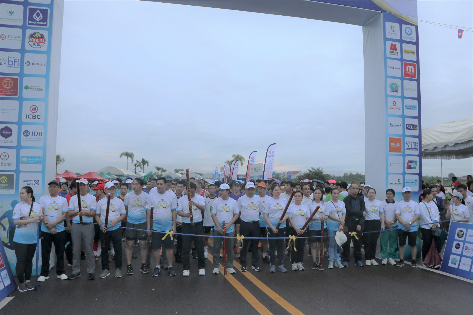 ໃນຕອນເຊົ້າເວລາ 6:00 ໂມງ ຂອງວັນທີ 30 ກັນຍາ 2023 ຢູ່ທີ່ ເຂດເສດຖະກິດພິເສດບຶງ ທາດຫຼວງ ໄດ້ມີຂະບວນການ ຍ່າງ-ແລ່ນ ເພື່ອສຸຂະພາບແລະຄວາມສາມະຄີເນື່ອງໃນໂອກາດຄົບຮອບ 55 ປີ ວັນສ້າງຕັ້ງທະນາຄານ ແຫ່ງສປປລາວ (7/10/1969-7/10/2023 ) ເປັນກຽດເຂົ້າຮ່ວມໃນພິທີຄັ້ງນີ້ໂດຍ: ທ່ານ ສະເຫຼີມໄຊ ກົມມະສິດ ຮອງນາຍົກລັດຖະມົນຕີ ລັດຖະມົນຕີກະຊວງການຕ່າງປະເທດ, ທ່ານ ອາດສະພັງທອງ ສີພັນດອນ ເຈົ້າຄອງນະຄອນຫຼວງວຽງຈັນ, ທ່ານ ສອນໄຊ ສິດພະໄຊ ລັດຖະມົນຕີປະຈໍາສໍານັກງານນາຍົກລັດຖະມົນຕີ, ມີທ່ານ ອາລຸນໄຊ ລັດຖະມົນຕີ ປະຈໍາສໍານັກງານນາຍົກລັດຖະມົນຕີ ກໍໄດ້ເຂົ່າຮ່ວມຍ່າງເພື່ອສຸຂະພາຍຄັ້ງນີ້. ທະນາຄານແຫ່ງ ສປປ ລາວ ພ້ອມດ້ວຍ ທະນາຄານທຸລະກິດ ທີ່ດໍາເນີນທຸລະກິດຢູ່ສປປ ລາວ ໄດ້ຮ່ວມກັນຈັດຂະບວນການແຂ່ງຂັນກິລາຍ່າງ- ແລ່ນ ເພື່ອສຸຂະພາບ ແລະ ຄວາມສາມັກຄີ ເນື່ອງໃນໂອກາດສະເຫຼີມສະຫຼອງວັນສ້າງຕັ້ງທະນາຄານແຫ່ງ ສປປ ລາວ ຄົບຮອບ 55 ປີ ໂດຍແບ່ງເປັນ 3 ໄລຍະທາງຄື :