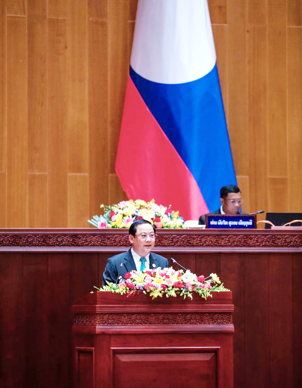 ທ່ານ ສອນໄຊ ສີພັນດອນ ນາຍົກລັດຖະມົນຕີ ໄດ້ກ່າວລາຍງານກ່ຽວກັບສະພາບການເຄື່ອນໄຫວວຽກງານທີ່ພົ້ນເດັ່ນກາງສະໄໝ 5 ປີ ຄັ້ງທີ IX (2021-2025), ທິດທາງແຜນການທ້າຍສະໄໝ ຮອດປີ 2025 ແລະການຈັດຕັ້ງປະຕິບັດແຜນການປະຈໍາປີ 2023 ແລະທິດທາງແຜນການປະຈໍາປີ 2024 ຕໍ່ກອງປະຊຸມສະໄໝສາມັນ ເທື່ອທີ 6 ຂອງສະພາແຫ່ງຊາດ ຊຸດທີ IX ໃນວັນທີ 31 ຕຸລາ 2023 ວ່າ: