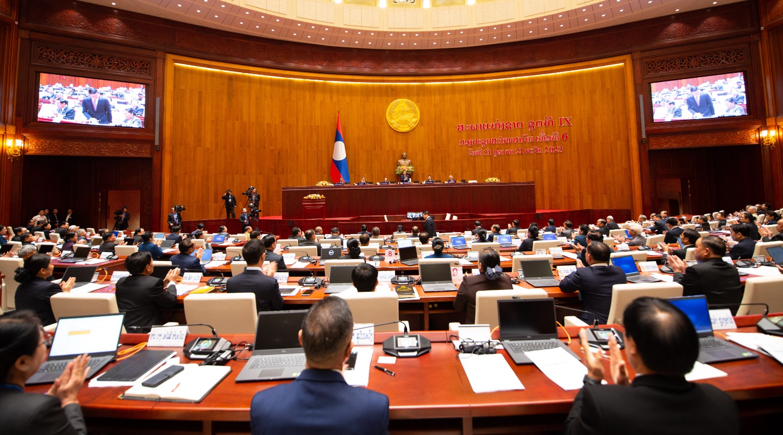 ທ່ານ ສັນຕິພາບ ພົມວິຫານ ລັດຖະມົນຕີກະຊວງການເງິນໄດ້ລາຍງານການຈັດຕັ້ງປະຕິບັດແຜນງົບປະມານແຫ່ງລັດ ກາງສະໄໝ 5 ປີ(2021-2025) ແລະ ແຜນການທ້າຍສະໄໝ ຮອດປີ 2025, ການຈັດຕັ້ງປະຕິບັດແຜນການປະຈໍາປີ 2023 ແລະ ແຜນການປະຈຳປີ 2024 ຂອງລັດຖະບານ ຕໍ່ກອງປະຊຸມສະໄໝສາມັນ ເທື່ອທີ 6 ຂອງສະພາແຫ່ງຊາດ ຊຸດທີ IX ວ່າ: ໃນໄລຍະກາງສະໄໝຂະແໜງການເງິນໄດ້ປະເຊີນກັບຄວາມຫຍຸ້ງຍາກດ້ານເສດຖະກິດ-ການເງິນ, ອັດຕາເງິນເຟີ້ສູງ, ອັດຕາແລກປ່ຽນຜັນຜວນ, ຄ່າຄອງຊີບທີ່ນັບມື້ນັບສູງຂຶ້ນບວກກັບໄພພິບັດທຳມະຊາດ, ປະກົດການຫຍໍ້ທໍ້ທາງສັງຄົມ ແລະການແຜ່ລະບາດພະຍາດຕາມລະດູການ ແຕ່ພາຍໃຕ້ການນຳພາຢ່າງໃກ້ຊິດຂອງພັກ-ລັດຖະບານ ແລະ ການຕິດຕາມ, ກວດກາ ຂອງສະພາແຫ່ງຊາດ ໄດ້ເຮັດໃຫ້ບັນຫາທີ່ກ່າວມານັ້ນຖືກຄວບຄຸມ ບໍ່ໃຫ້ຕົກເຂົ້າສູ່ສະພາບວິກິດການຮ້າຍແຮງ ໂດຍສະເພາະບໍ່ໃຫ້ເກີດສະພາບການຖົດຖອຍຮ້າຍແຮງ ຕໍ່ເສດຖະກິດ-ການເງິນ ແລະເງິນຕາດ້ວຍການຮັກສາລະດັບໜີ້ສິນສາທາລະນະບໍ່ເກີນ 64,5% ຂອງ GDP, ໜີ້ຕ່າງປະເທດບໍ່ເກີນ 55,4% ຂອງ GDP ແລະການຊໍາລະໜີ້ສິນຕ່າງປະເທດສາມາດປະຕິບັດໄດ້ຕາມແຜນ, ສ່ວນໜີ້ສິນພາຍໃນ ຢູ່ໃນກອບທີ່ຮັກສາໄດ້ສະຖຽນລະພາບເສດຖະກິດມະຫາພາກ.