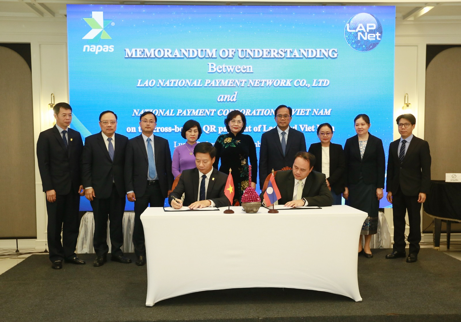 ນອກຈາກນັ້ນ, ຍັງມີພິທີລົງນາມໃນບົດບັນທຶກຄວາມເຂົ້າໃຈວ່າດ້ວຍການຮ່ວມມືລະຫວ່າງບໍລິສັດ LAPNETແລະ NAPAS ເພື່ອຄົ້ນຄວ້າການເຊື່ອມລະບົບການຊໍາລະຂ້າມແດນລະຫວ່າງ ສປປ ລາວ ແລະ ສສ ຫວຽດນາມ ຜ່ານ QRCode ໂດຍມີຄະນະຜູ້ວ່າການ, ຕາງໜ້າກົມກ່ຽວຂ້ອງຈາກສອງທະນາຄານກາງ, ບໍລິສັດ LAPNET ແລະ NAPAS, ຕາງໜ້າຈາກທະນາຄານທຸລະກິດລາວ ແລະທະນາຄານທຸລະກິດຫວຽດນາມປະຈໍາ ສປປ ລາວ ກໍ່ເຂົ້າຮ່ວມ.
