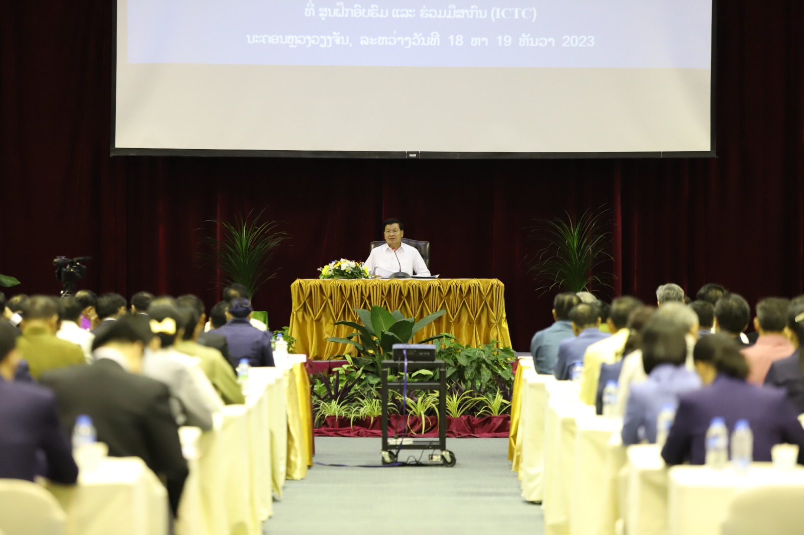 ກອງປະຊຸມສະຫຼຸບວຽກງານການເງິນ ປະຈຳ 2023 ແລະທິດທາງແຜນການປີ 2024 ພາຍໃຕ້ຄຳຂວັນເພື່ອບັນລຸເປົ້າໝາຍການສ້າງແຜນງົບປະມານແຫ່ງລັດ “ລາຍຮັບພາຍໃນກຸ້ມລາຍຈ່າຍພາຍໃນ, ມີສ່ວນສະສົມໄວ້ ແລະ ບຸກທະລຸການຄຸ້ມຄອງງົບປະມານແຫ່ງລັດເປັນທັນສະໄໝ” ໄດ້ອັດລົງດ້ວຍຜົນສຳເລັດໃນວັນທີ 19 ທັນວາ 2023 ທີ່ສູນການຮ່ວມມືສາກົນ ແລະຝຶກອົບຮົມ (ICTC) ນະຄອນຫຼວງວຽງຈັນ,ໂດຍໃຫ້ກຽດເຂົ້າຮ່ວມໂອ້ລົມຂອງສະຫາຍ ທອງລຸນ ສີສຸລິດ ເລຂາທິການໃຫຍ່ຄະນະບໍລິຫານງານສູນກາງພັກ, ປະທານປະເທດ ແຫ່ງ ສປປ ລາວ, ມີບັນດາລັດຖະມົນຕີ, ຜູ້ວ່າການທະນາຄານແຫ່ງ ສປປ ລາວ, ຮອງລັດຖະມົນຕີ, ເຈົ້າແຂວງ, ຮອງເຈົ້າແຂວງ ແລະ ຮອງເຈົ້າຄອງນະຄອນຫຼວງວຽງຈັນ ແລະຂະແໜງການການເງິນທັງສູນກາງ, ທ້ອງຖິ່ນເຂົ້າຮ່ວມ.