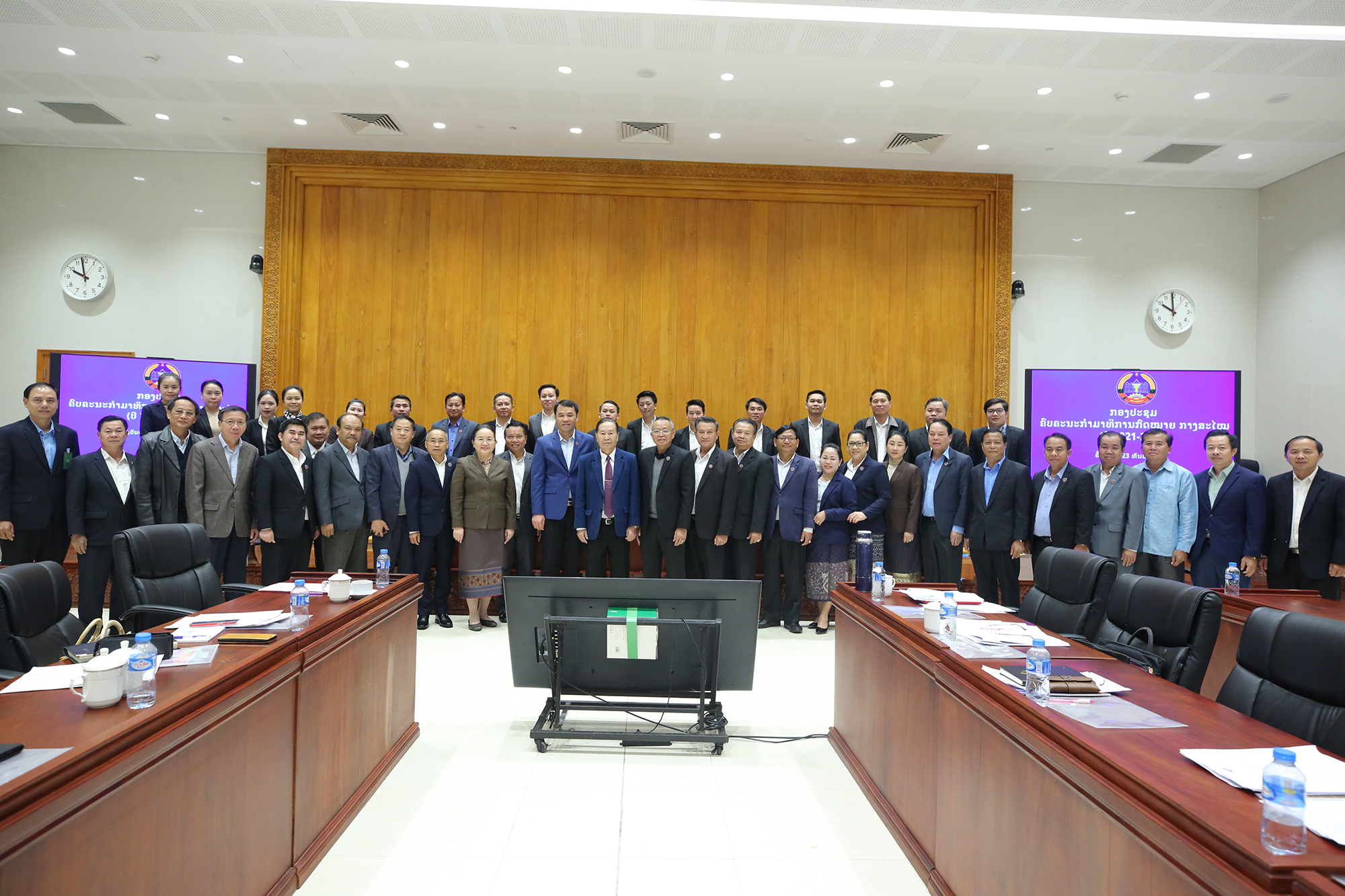ວັນທີ 23 ທັນວາ 2023 ຢູ່ຫໍສະພາແຫ່ງຊາດ ໄດ້ຈັດກອງປະຊຸມຄົບຄະນະຂອງກຳມາທິການກົດໝາຍໂດຍການປະທານຂອງທ່ານ ຈະເລີນ ເຍຍປາວເຮີີ ຮອງປະທານສະພາແຫ່ງຊາດ, ປະທານກຳມາທິການກົດໝາຍ; ເຂົ້າຮ່ວມມີບັນດາທ່ານຮອງປະທານກຳມາທິການສະພາແຫ່ງຊາດ, ຮອງລັດຖະມົນຕີກະຊວງຍຸຕິທຳ, ຮອງຫົວໜ້າຫ້ອງວ່າການສຳນັກງານປະທານປະເທດ, ຮອງຫົວໜ້າຫ້ອງວ່າການສຳນັກງານນາຍົກລັດຖະມົນຕີ, ບັນດາທ່ານສະມາຊິກສະພາແຫ່ງຊາດ ທີ່ສັງກັດກຳມາທິການກົດໝາຍ, ຕາງໜ້າຄະນະເລຂາທິການສະພາແຫ່ງຊາດ, ສະຖາບັນຄົ້ນຄວ້ານິຕິກຳ, ຫົວໜ້າ-ຮອງຫົວໜ້າກົມ ແລະພະນັກງານ-ລັດຖະກອນ ຂອງກຳມາທິການກົດໝາຍ.
