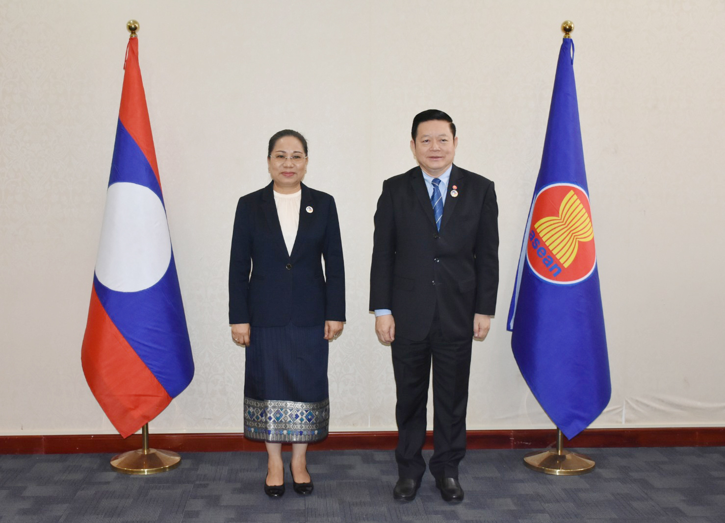 ທ່ານນາງ ສວນສະຫວັນ ວິຍະເກດ ລັດຖະມົນຕີກະຊວງຖະແຫລງຂ່າວ, ວັດທະນະທຳ ແລະທ່ອງທ່ຽວ (ຖວທ) ໄດ້ພົບປະກັບ ທ່ານ ກາວ ກິມ ຮວນ ເລຂາທິການໃຫຍ່ອາຊຽນ ເພື່ອປຶກສາຫາລືກ່ຽວກັບແຜນບູລິມະສິດ ໃນປີ 2024 ຂອງວຽກງານອາຊຽນໃນຂົງເຂດ ຖວທ ໃນໂອກາດເຂົ້າຮ່ວມກອງປະຊຸມລັດຖະມົນຕີ ທ່ອງທ່ຽວອາຊຽນ ແລະງານວາງສະແດງທ່ອງທ່ຽວອາຊຽນທີ່ ສປປ ລາວ ໄດ້ຮັບກຽດເປັນເຈົ້າພາບ.