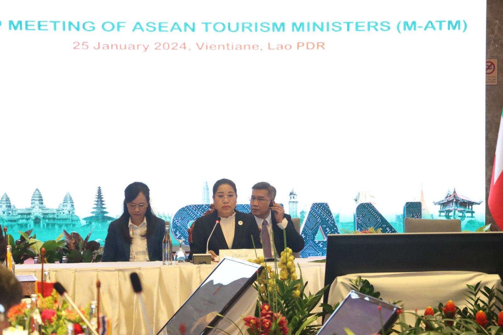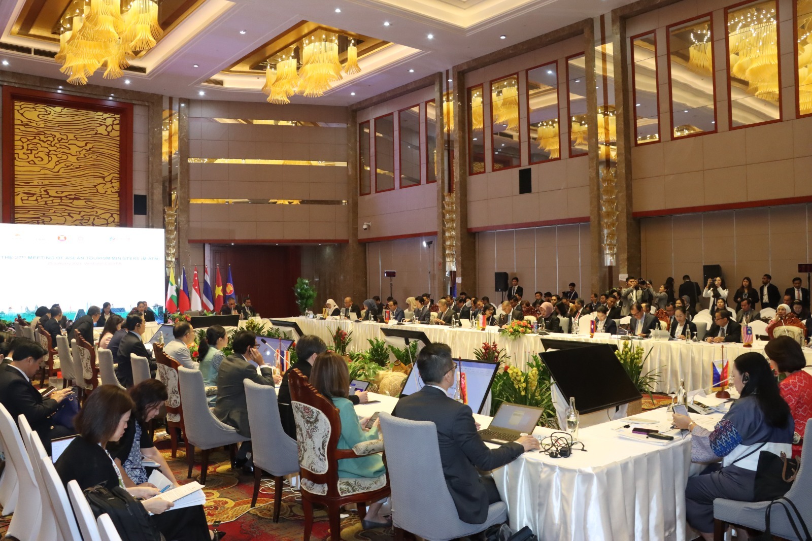 ກອງປະຊຸມລັດຖະມົນຕີທ່ອງທ່ຽວອາຊຽນ ຄັ້ງທີ 27 ໄຂຂຶ້ນຢ່າງເປັນທາງການໃນວັນທີ 25 ມັງກອນ 2024 ທີ່ໂຮງແຮມແລນມາກ ແມ່ຂອງລີເວີໄຊ ນະຄອນຫຼວງວຽງຈັນ ໂດຍການເປັນປະທານຂອງທ່ານນາງ ສວນສະຫວັນ ວິຍະເກດ ລັດຖະມົນຕີກະຊວງຖະແຫລງຂ່າວ, ວັດທະນະທຳ ແລະທ່ອງທ່ຽວ (ຖວທ) ແລະ ທ່ານ ດາໂຕະ ຊິຣີ ທິອອງ ຄິງຊິງ ລັດຖະມົນຕີທ່ອງທ່ຽວສິລະປະ ແລະ ວັດທະນະທຳ ມາເລເຊຍ, ມີບັນດາລັດຖະມົນຕີທ່ອງທ່ຽວອາຊຽນ ແລະເລຂາທິການໃຫຍ່ອາຊຽນ ເຂົ້າຮ່ວມ.