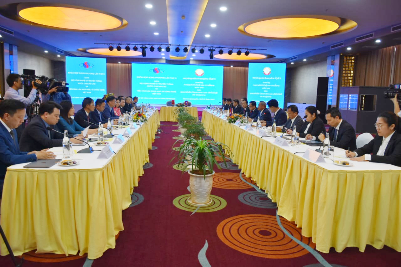 ໃນວັນທີ 05 ສິງຫາ 2024, ທີ່ໂຮງແຮມເມືອງແທັງ, ນະຄອນຫຼວງວຽງຈັນ ໄດ້ມີກອງປະຊຸມພົບປະສອງຝ່າຍ ໂດຍການເປັນປະທານຮ່ວມຂອງທ່ານ ລັດຖະມົນຕີ ກະຊວງເຕັກໂນໂລຊີ ແລະ ການສື່ສານ ສປປ ລາວ ແລະ ທ່ານປະທານ ສະພາບັນດິດວິທະຍາສາດ ແລະ ເຕັກໂນໂລຊີ ສສ ຫວຽດນາມ ພ້ອມດ້ວຍຄະນະຜູ້ແທນຈາກທັງສອງຝ່າຍເຂົ້າຮ່ວມ. ໃນກອງປະຊຸມຄັ້ງນີ້ຍັງໄດ້ຮັບຟັງການລາຍງານສະພາບການຜັນຂະຫຍາຍການຮ່ວມມືໃນໄລຍະຜ່ານມາຂອງສອງຝ່າຍ ພ້ອມທັງປຶກສາຫາລືການຮ່ວມມືໃນອະນາຄົດ ໃນທ່າມກາງບັນຍາກາດແຫ່ງຄວາມສາມັກຄີມິດຕະພາບ, ບົນຈິດໃຈຮັບຜິດຊອບສູງ ແລະ ຮ່ວມກັນພັດທະນາໃນຍຸກດິຈິຕອນ ໂດຍໄດ້ເປັນເອກະພາບ ຄື: ສອງຝ່າຍ ຍ້ອງຍໍຊົມເຊີຍ ແລະ ຕີລາຄາສູງ ຕໍ່ໝາກຜົນການຮ່ວມມືລະຫວ່າງ ສະພາບັນດິດ ວິທະຍາສາດ ແລະເຕັກໂນໂລຊີ ແຫ່ງ ສສ ຫວຽດນາມ ແລະ ກະຊວງເຕັກໂນໂລຊີ ແລະ ການສື່ສານ ແຫ່ງ ສປປ ລາວ ໃນໄລຍະຜ່ານມາ; ເຫັນດີຊຸກຍູ້ໃຫ້ສໍາເລັດໂຄງການ “ກໍ່ສ້າງສູນຂໍ້ມູນ ແລະການສື່ສານ ທາງໄພພິບັດ (ແຜ່ນດິນໄຫວ) ໃຫ້ແກ່ ສປປ ລາວ” ບົນພື້ນຖານຫ້ອງທົດລອງຮ່ວມ ລະຫວ່າງ ກະຊວງເຕັກໂນໂລຊີ ແລະ ການສື່ສານ ລາວ ແລະສະພາບັນດິດວິທະຍາສາດ ແລະ ເຕັກໂນໂລຊີ ຫວຽດນາມ ສອງຝ່າຍຈະປະສານສົມທົບກັນຢ່າງແໜ້ນແຟ້ນ ຄົ້ນຄວ້າຢ່າງມີປະສິດທິພາບ ຕໍ່ບັນດາອຸປະກອນຫ້ອງທົດລອງ, ຜັນຂະຫຍາຍວຽກງານກໍ່ສ້າງ, ຄົ້ນຄວ້າທີ່ກ່ຽວຂ້ອງ; ສ້າງປະຖົມປັດໄຈ ເພື່ອຊຸກຍູ້ປັບປຸງໃຫ້ສົມບູນ ພື່ອນໍາເຂົ້າບັນຊີໂຄງການທີ່ໄດ້ຮັບອະນຸມັດງົບປະມານຈັດຕັ້ງປະຕິບັດ ໄລຍະ 2026 - 2027 ໃນກອງປະຊຸມ ຄັ້ງທີ 47 ຄະນະຮ່ວມມືທະວິພາຄີລະຫວ່າງສອງລັດຖະບານ ກ່ຽວກັບການຮ່ວມມືສອງຝ່າຍ ລາວ - ຫວຽດນາມ ປີ 2025; ສະພາບັນດິດວິທະຍາສາດ ແລະ ເຕັກໂນໂລຊີ ຊ່ວຍເຫຼືອ ກະຊວງເຕັກໂນໂລຊີ ແລະ ການສື່ສານ ໃນການພັດທະນາຊັບພະຍາກອນມະນຸດ ແລະ ສ້າງຄວາມເຂັ້ມແຂງທາງດ້ານວິຊາການ ປະກອບດ້ວຍ: (1) ການຮ່ວມມືສ້າງຫລັກສູດຝຶກອົບຮົມໃຫ້ແກ່ພະນັກງານ ໃນຂົງເຂດວຽກງານເຕັກໂນໂລຊີ ແລະ ນະວັດຕະກຳ, (2) ຈັດຝຶກອົບຮົມໃນຫົວຂໍ້ຕ່າງໆ ແລະ (3) ແລກປ່ຽນປະສົບການຊ່ຽວຊານ, ນັກວິທະຍາສາດ ແລະ ພະນັກງານຄົ້ນຄວ້າໃນການພັດທະນາເຕັກໂນໂລຊີດິຈິຕອນ; ແລກປ່ຽນຮ່ວມມືດ້ານການຈັດເກັບຂໍ້ມູນ ແລະ ຄຼາວຄອມພິວຕິງ, ກ້າວໄປເຖິງ ປະສານສົມທົບກັນສ້າງໂຄງການສູນແຫ່ງຊາດດ້ານການຈັດເກັບຂໍ້ມູນຂ່າວສານ ແລະ ຄຼາວຄອມພິວຕິງ; ໃຫ້ການຊ່ວຍເຫລືອ ກະຊວງເຕັກໂນໂລຊີ ແລະ ການສື່ສານ ໃນການສ້າງບັນດານິຕິກຳ, ບັນດາມາດຖານເຕັກນິກ, ພັດທະນາຊັບພະຍາກອນມະນຸດ ກ່ຽວກັບການຄຸ້ມຄອງ Big Data ແລະບັນດາການເຄື່ອນໄຫວຮ່ວມມືອື່ນໆ ທີ່ສອງຝ່າຍໃຫ້ຄວາມສົນໃຈ.