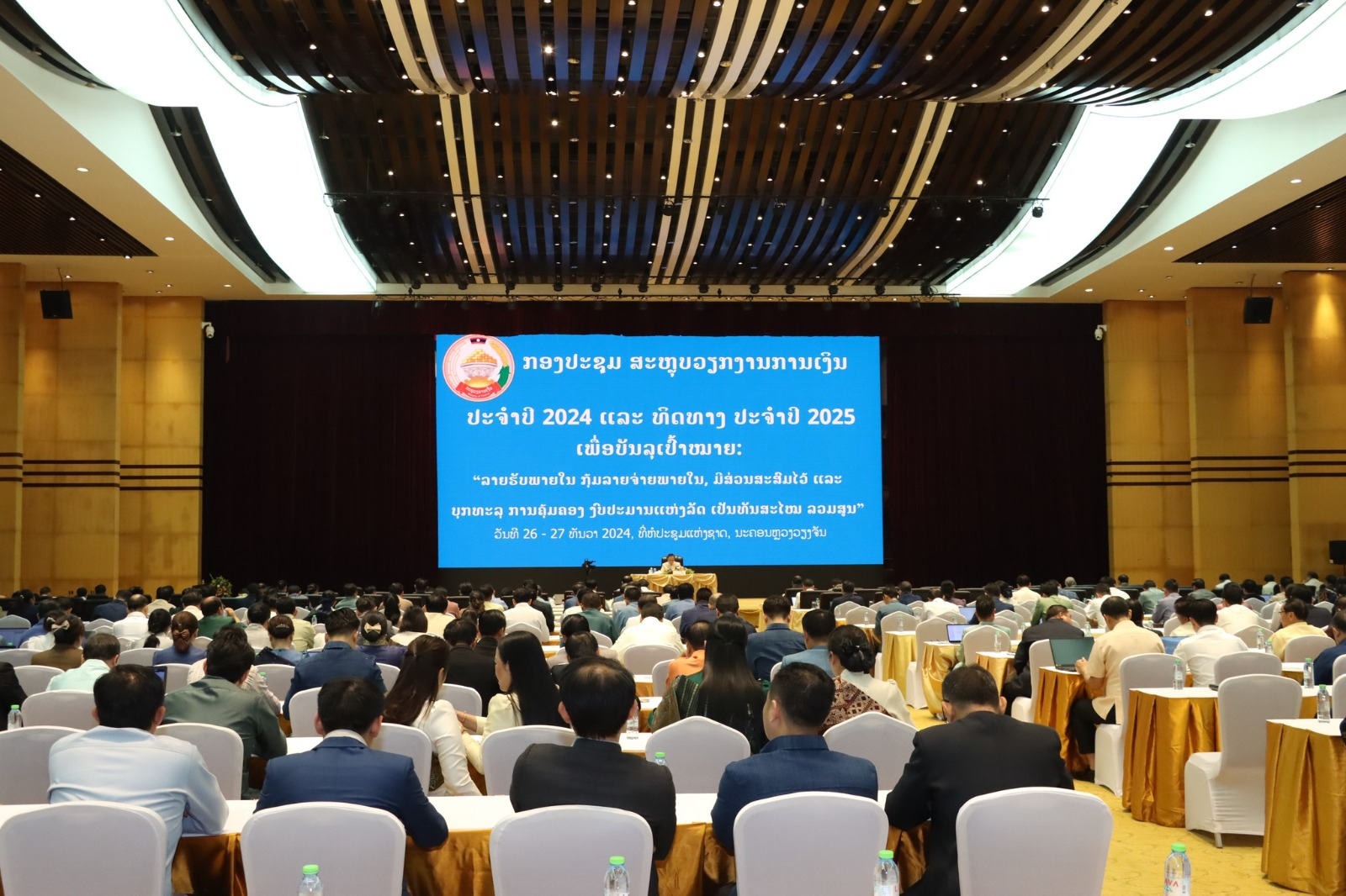 ກອງປະຊຸມສະຫຼຸບວຽກງານການເງິນ ທົ່ວປະເທດ ປະຈຳປີ 2024 ແລະ ວາງທິດທາງ ປະຈໍາປີ 2025 ຈັດຂຶ້ນໃນວັນທີ 26 ທັນວາ 2024 ທີ່ນະຄອນຫຼວງວຽງຈັນ ໂດຍການເປັນປະທານຂອງທ່ານ ສັນຕິພາບ ພົມວິຫານ ລັດຖະມົນຕີ ກະຊວງການເງິນ, ມີບັນດາລັດຖະມົນຕີ, ຫົວໜ້າອົງການລັດທຽບເທົ່າກະຊວງ ອ້ອມຂ້າງສູນກາງ,ຮອງເຈົ້າຄອງນະຄອນຫຼວງ, ບັນດາເຈົ້າແຂວງ, ຮອງເຈົ້າແຂວງ, ຮອງລັດຖະມົນຕີ, ຫົວໜ້າກົມ, ຮອງກົມ ແລະພາກສ່ວນກ່ຽວຂ້ອງເຂົ້າຮ່ວມ.