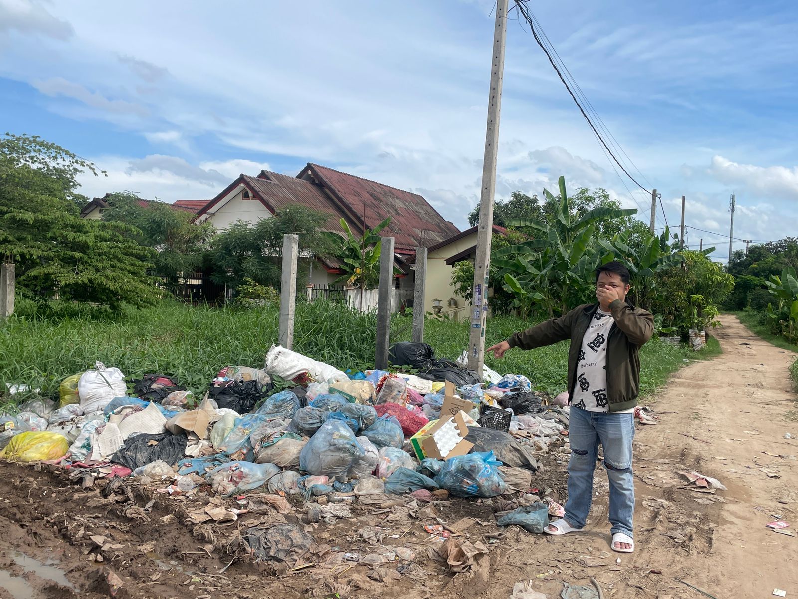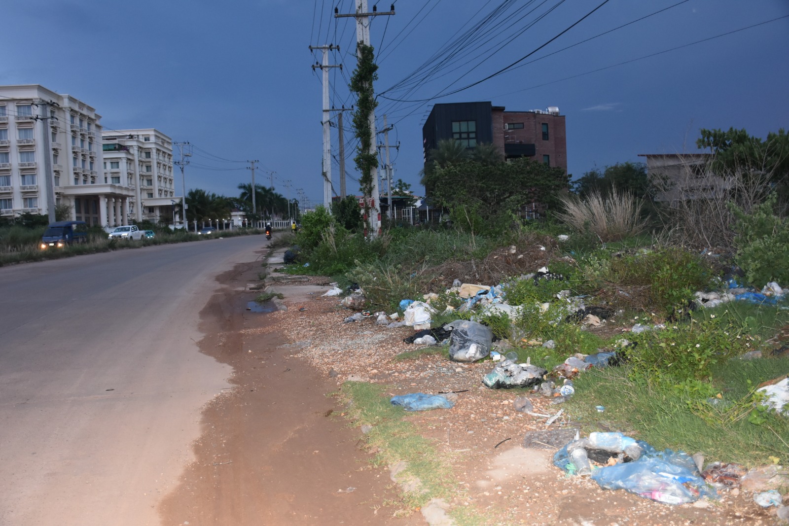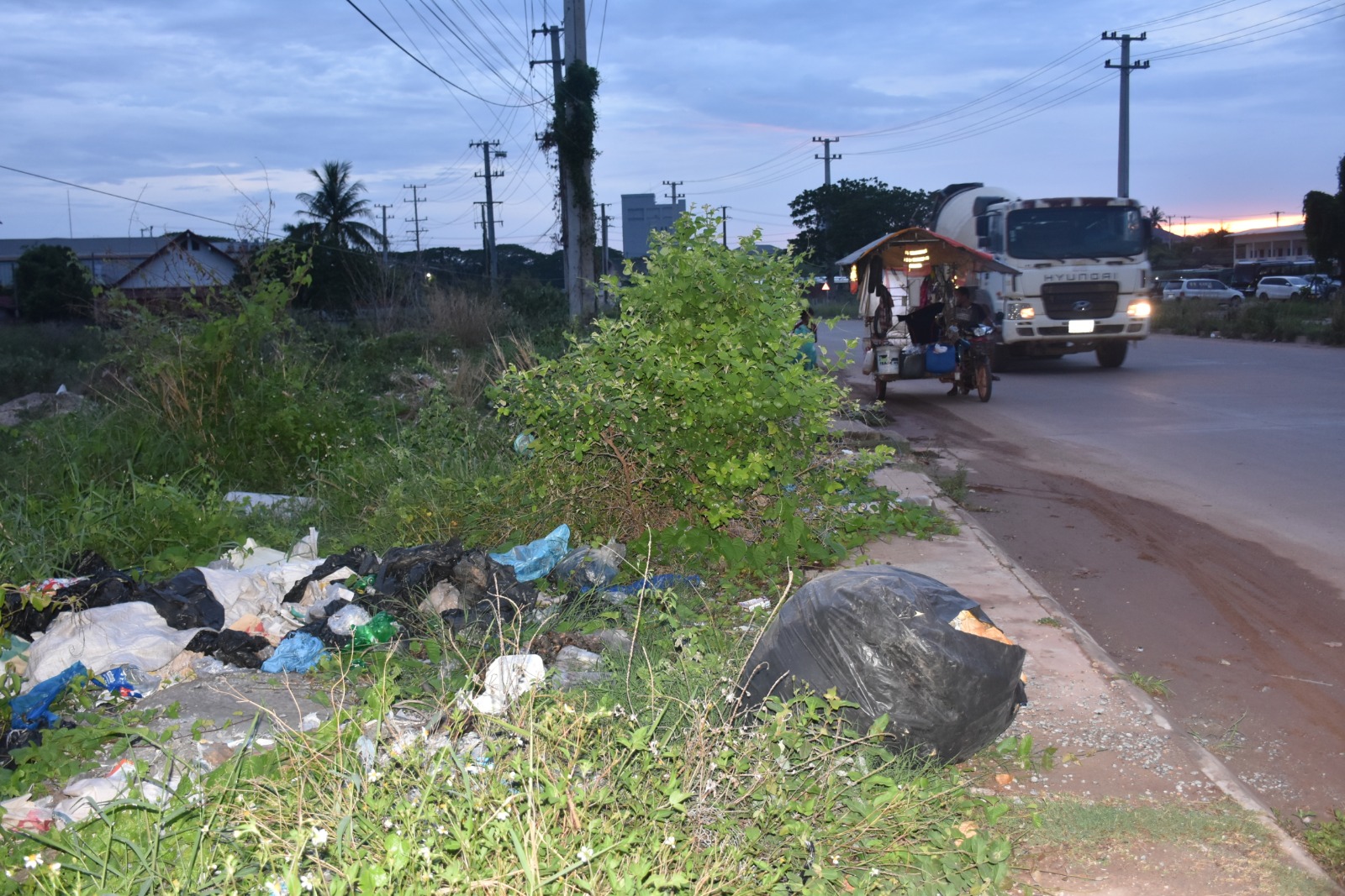 ຂີ້ເຫຍື້ອຖິ້ມກະຈາຍຂ້າງທາງບ້ານຫາດຊາຍຂາວ