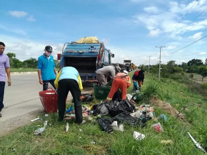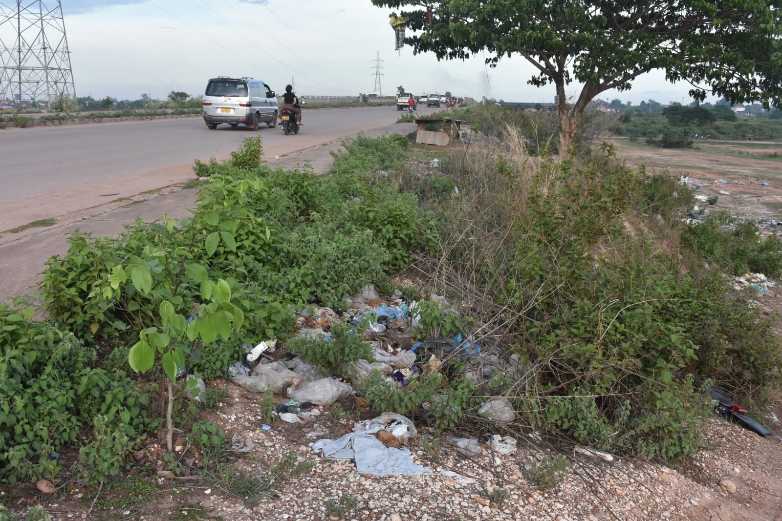 ຂີ້ເຫຍື້ອຊະຊາຍລຽບແຄມເສັ້ນທາງ ຕັດໃໝ່ດອນນົກຂຸ້ມ-ດອນກອຍ–ເມືອງນ້ອຍ